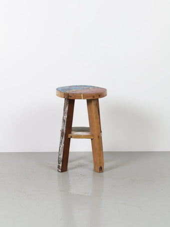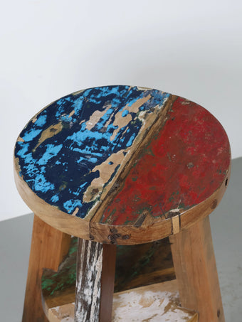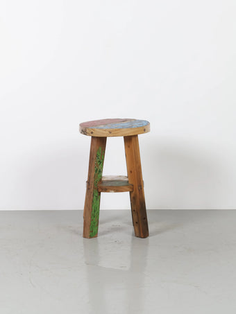 ベーシックなフォルムで無造作にペイントされている唯一無二のラウンド型木製スツール。