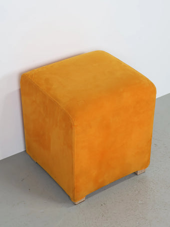 ハンガリーより買い付けましたオレンジファブリックプーフスツールです。