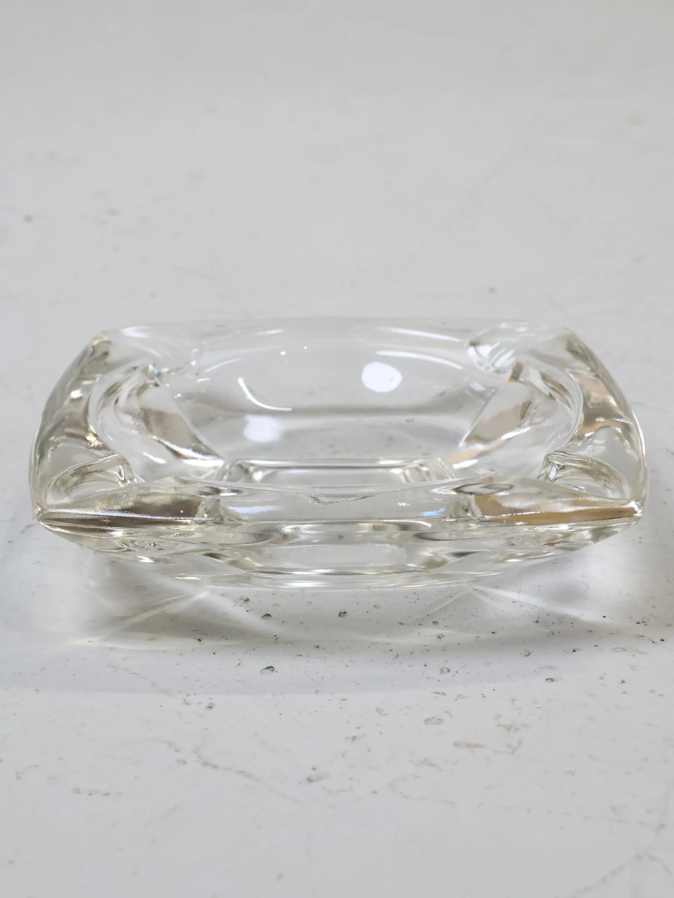 1970年代 ヴィンテージ クリアガラス アッシュトレイ 灰皿 スクエアデザイン 厚ガラス