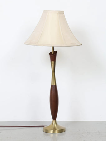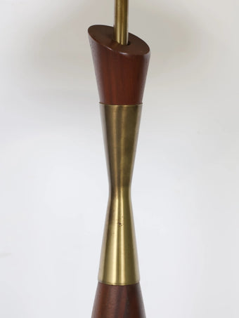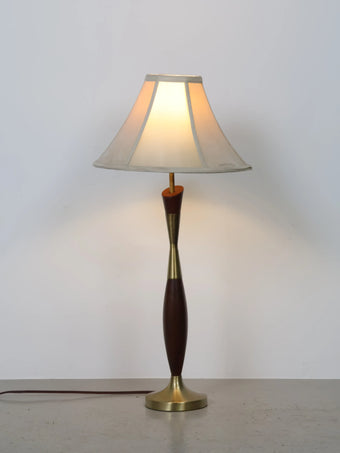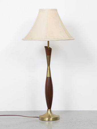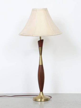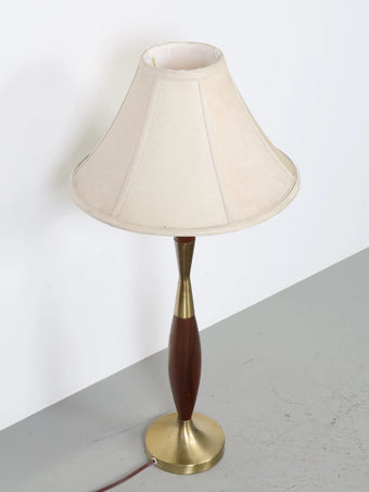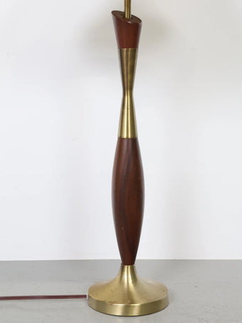 1960年代 ヴィンテージ ウッド & ブラスベース モダン テーブルランプ