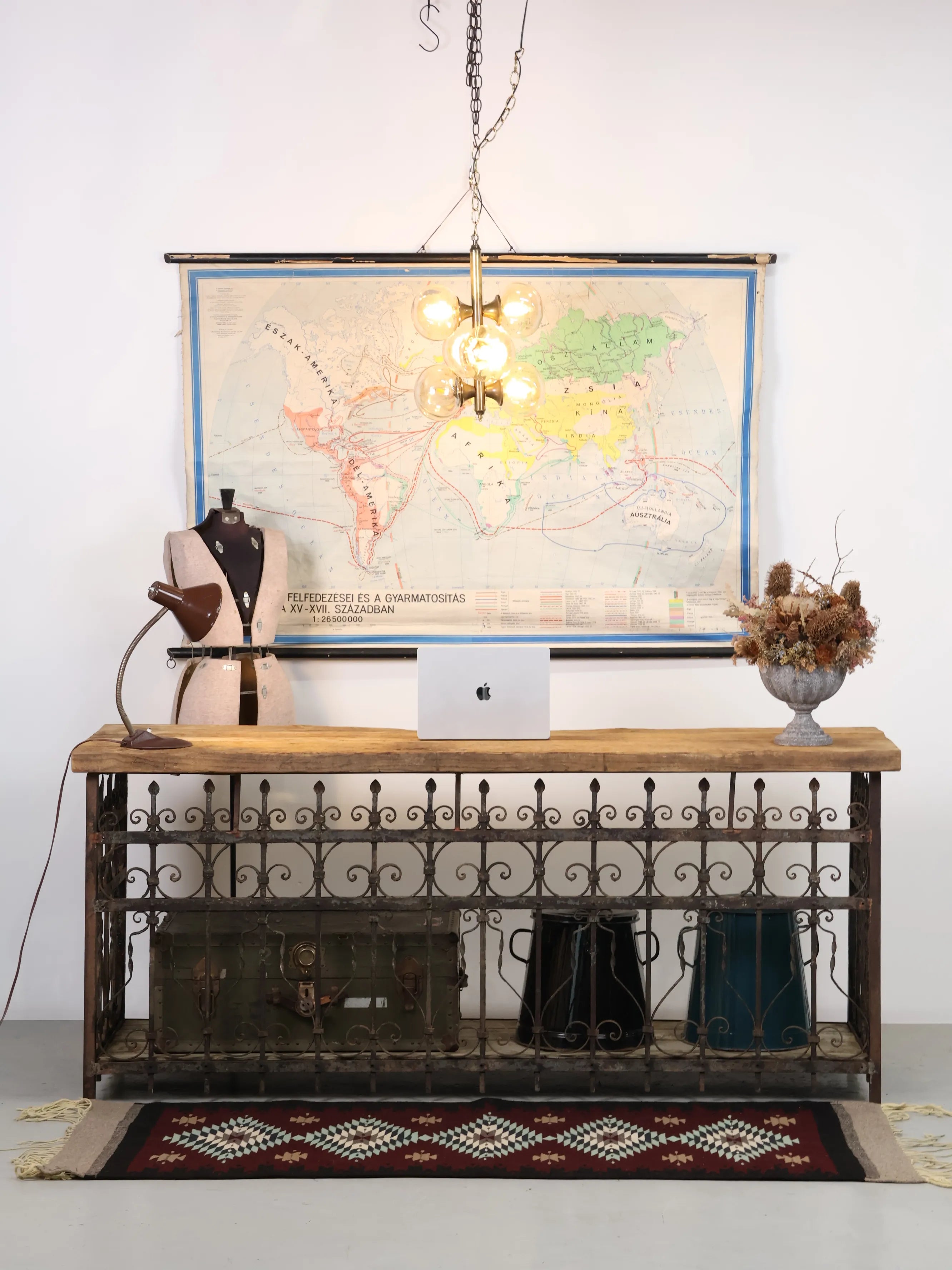 ベース部分は装飾性のあるアイアンワークが施され、クラシカルでヨーロッパな雰囲気を感じさせつつ、全体としてはインダストリアルな佇まい。