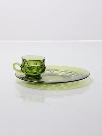 1960 - 70年代 Indiana Glass社製 ヴィンテージ グリーンガラス スナックセット