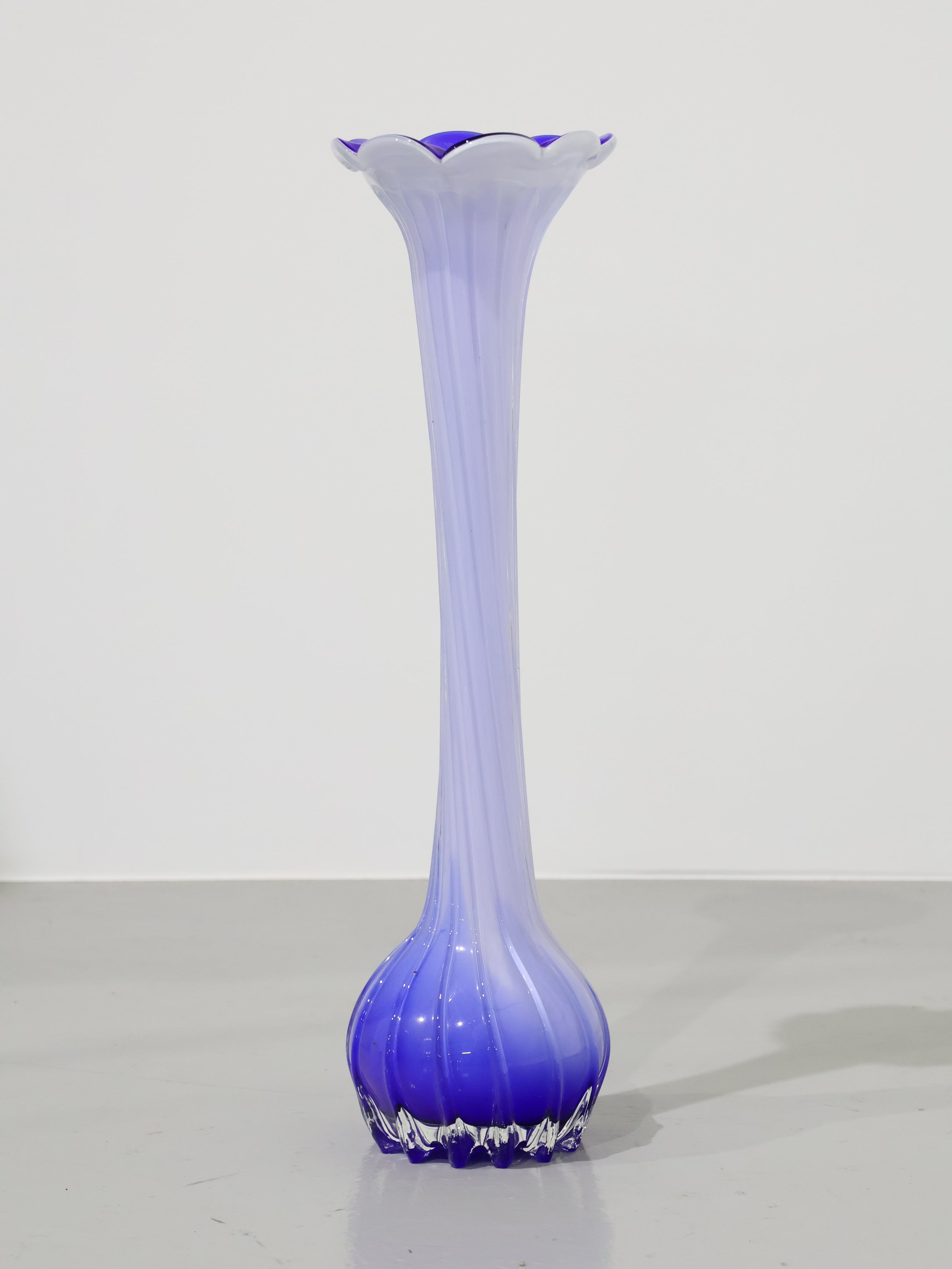 オランダより買い付けました1960年代-1970年代のブルーグラデーションガラスロングトールヴェース花瓶です。