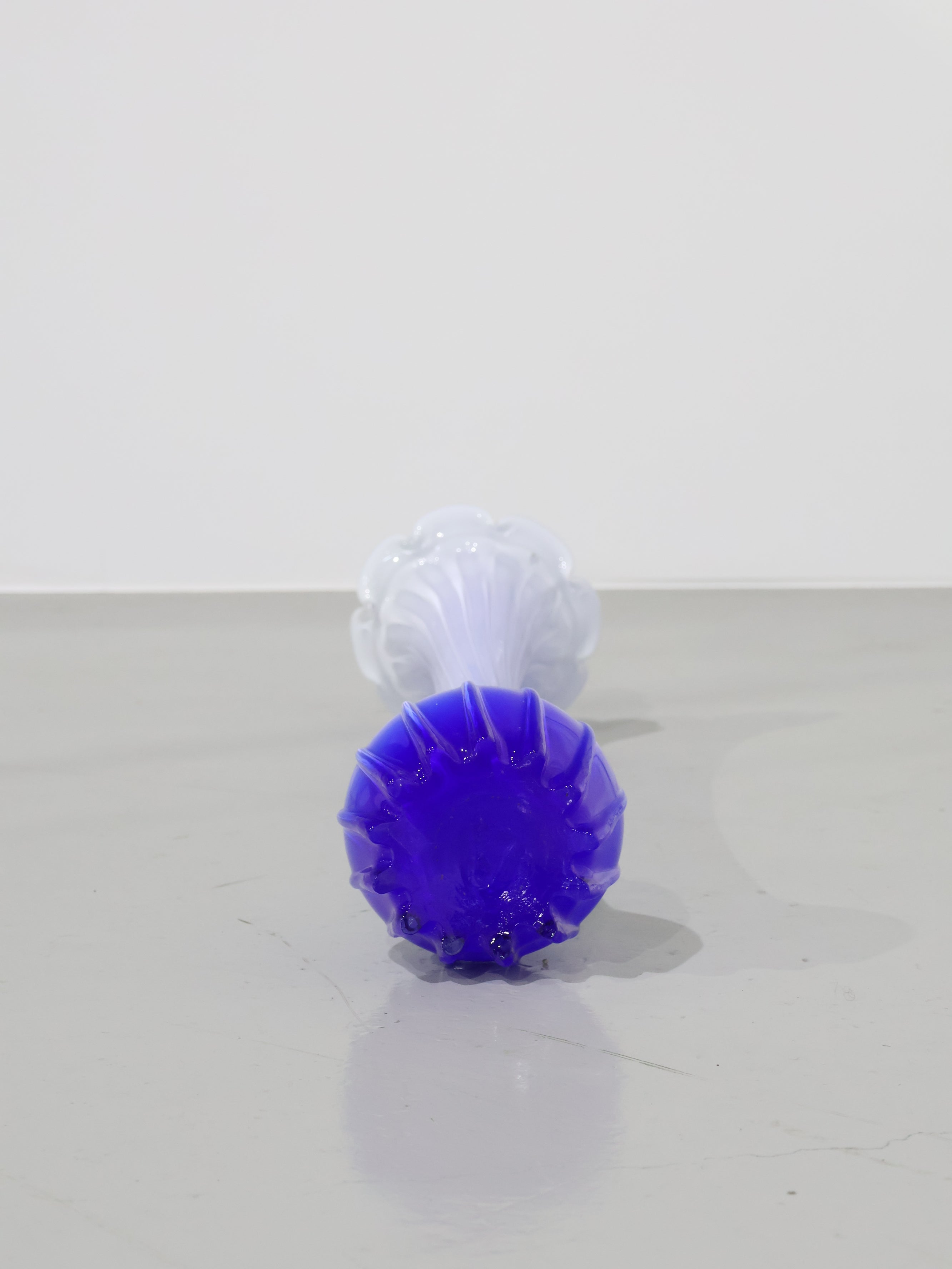 ブルーとホワイトのグラデーションと、花が開くように口が広がったデザインが美しくエレガント。