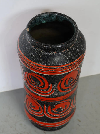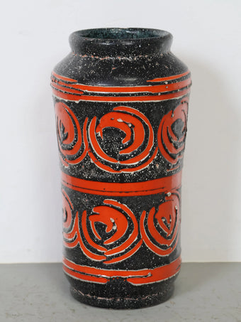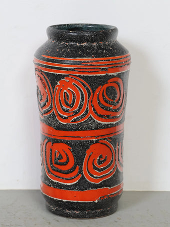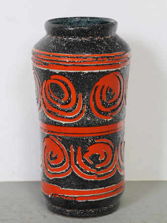 - 品名:ハンガリー製 セラミック 花瓶 ブラック×レッド 幾何学模様 フラワーベース ヴィンテージ 東欧陶器 ミッドセンチュリー