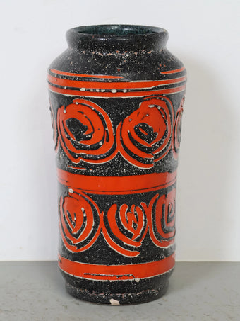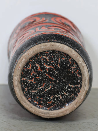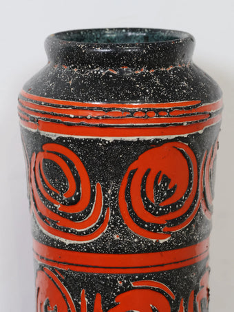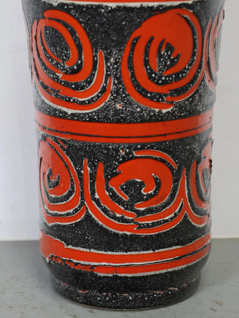 1960-70年代 ハンガリー製 セラミック 花瓶 ブラック×レッド 幾何学模様 フラワーベース ヴィンテージ 東欧陶器 ミッドセンチュリー