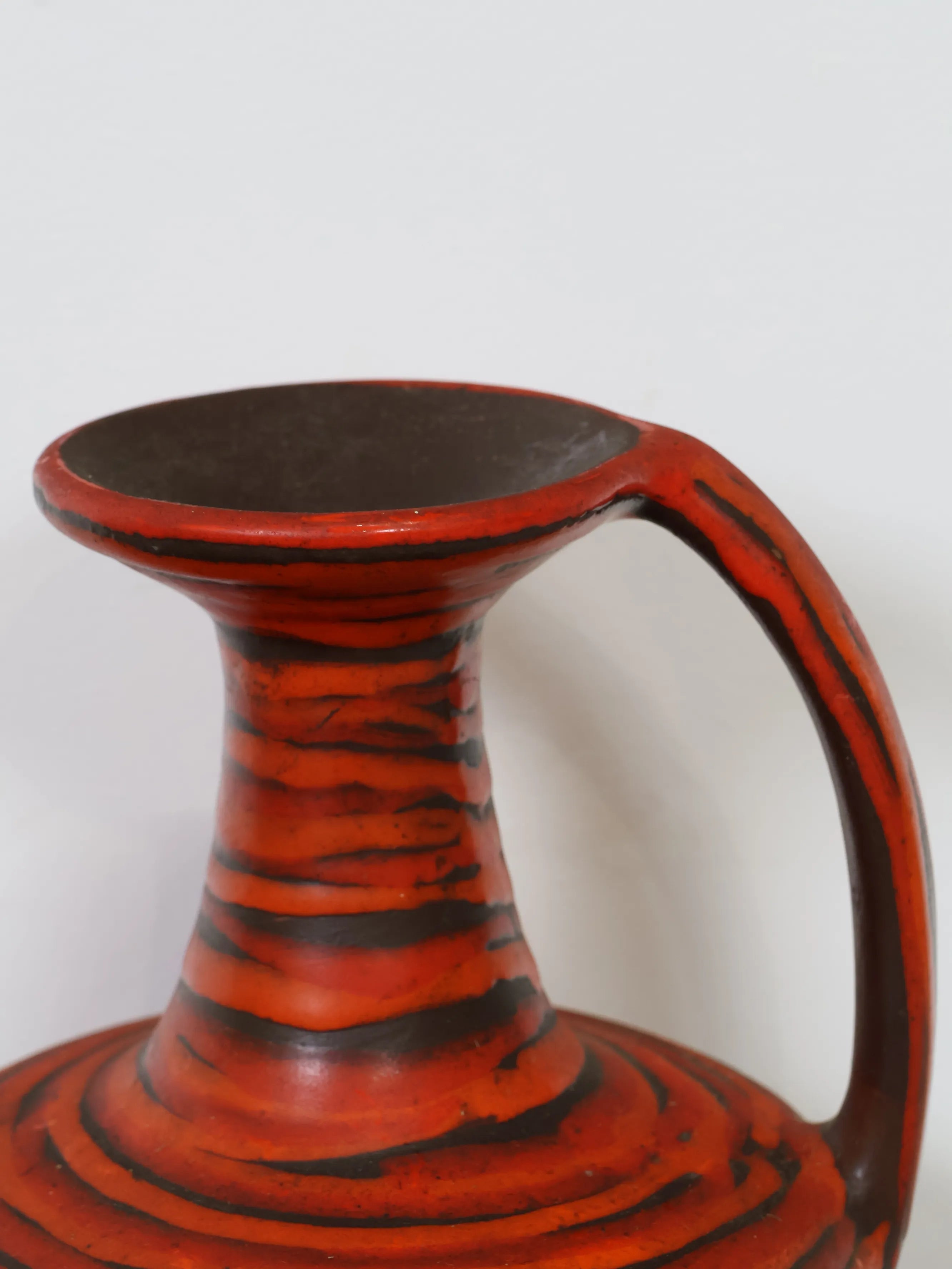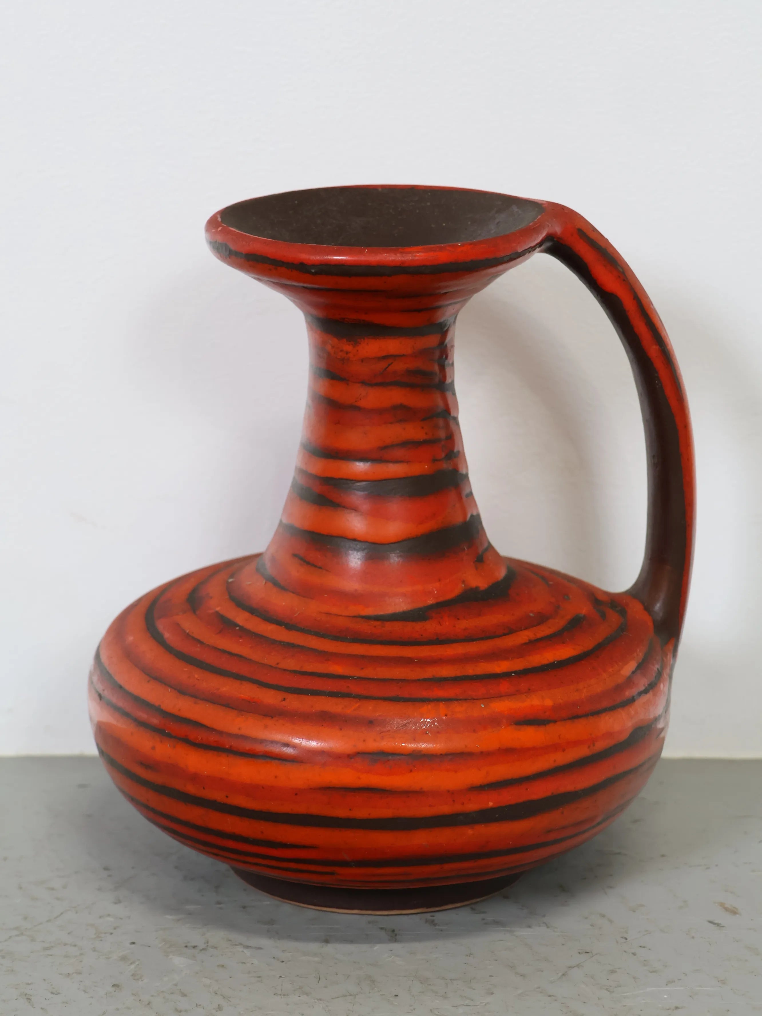 - 品名:ハンガリー製 セラミック 花瓶 レッド×ブラック ストライプ ジャグ型 ミッドセンチュリー ヴィンテージ 陶器 フラワーベース モダン