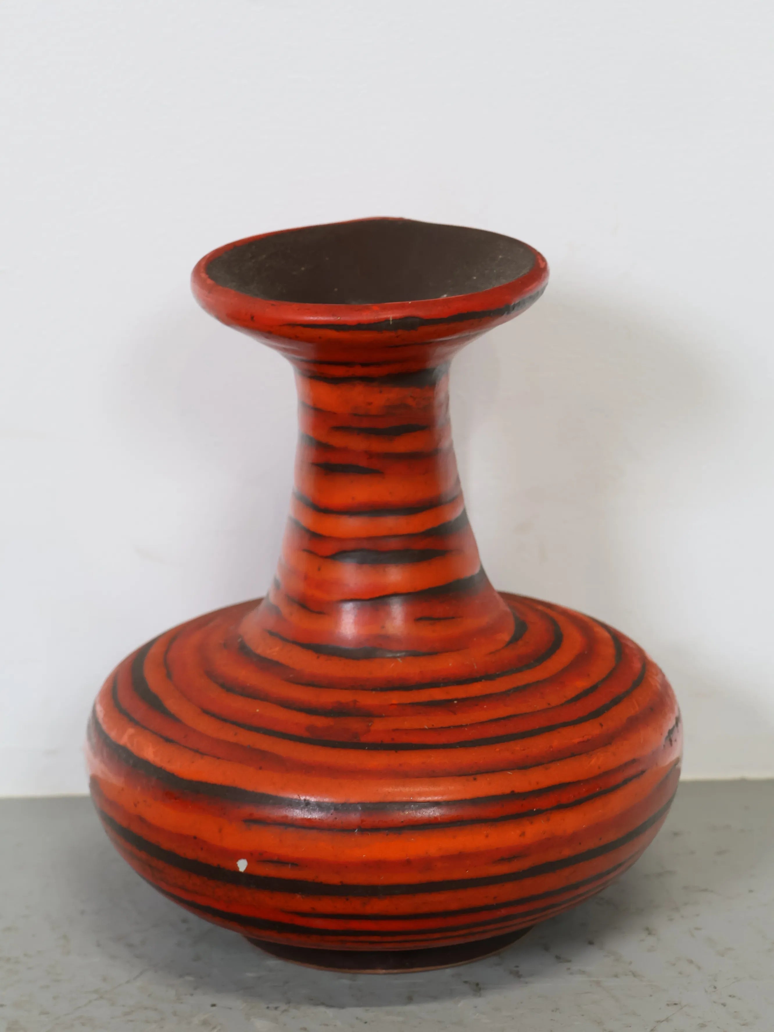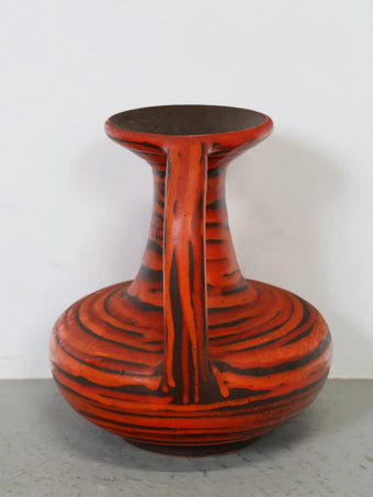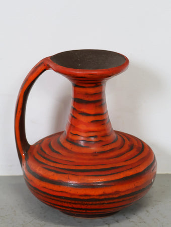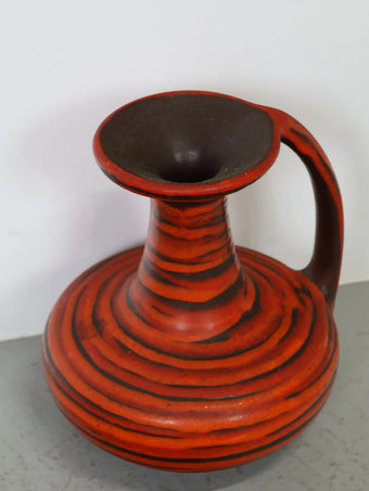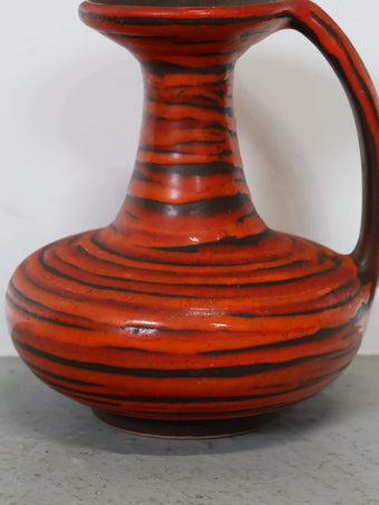 1960 - 70年代 ハンガリー製 セラミック 花瓶 レッド×ブラック ストライプ ジャグ型 ミッドセンチュリー ヴィンテージ 陶器 フラワーベース モダン