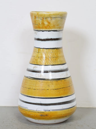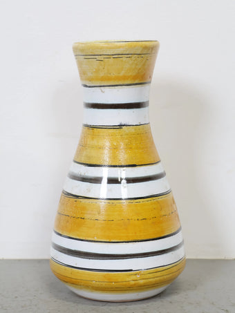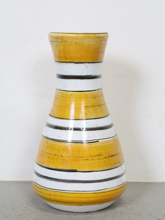 1960-70年代 ヴィンテージ セラミック フラワーベース 花瓶 ハンガリー製 ストライプ イエロー ミッドセンチュリー