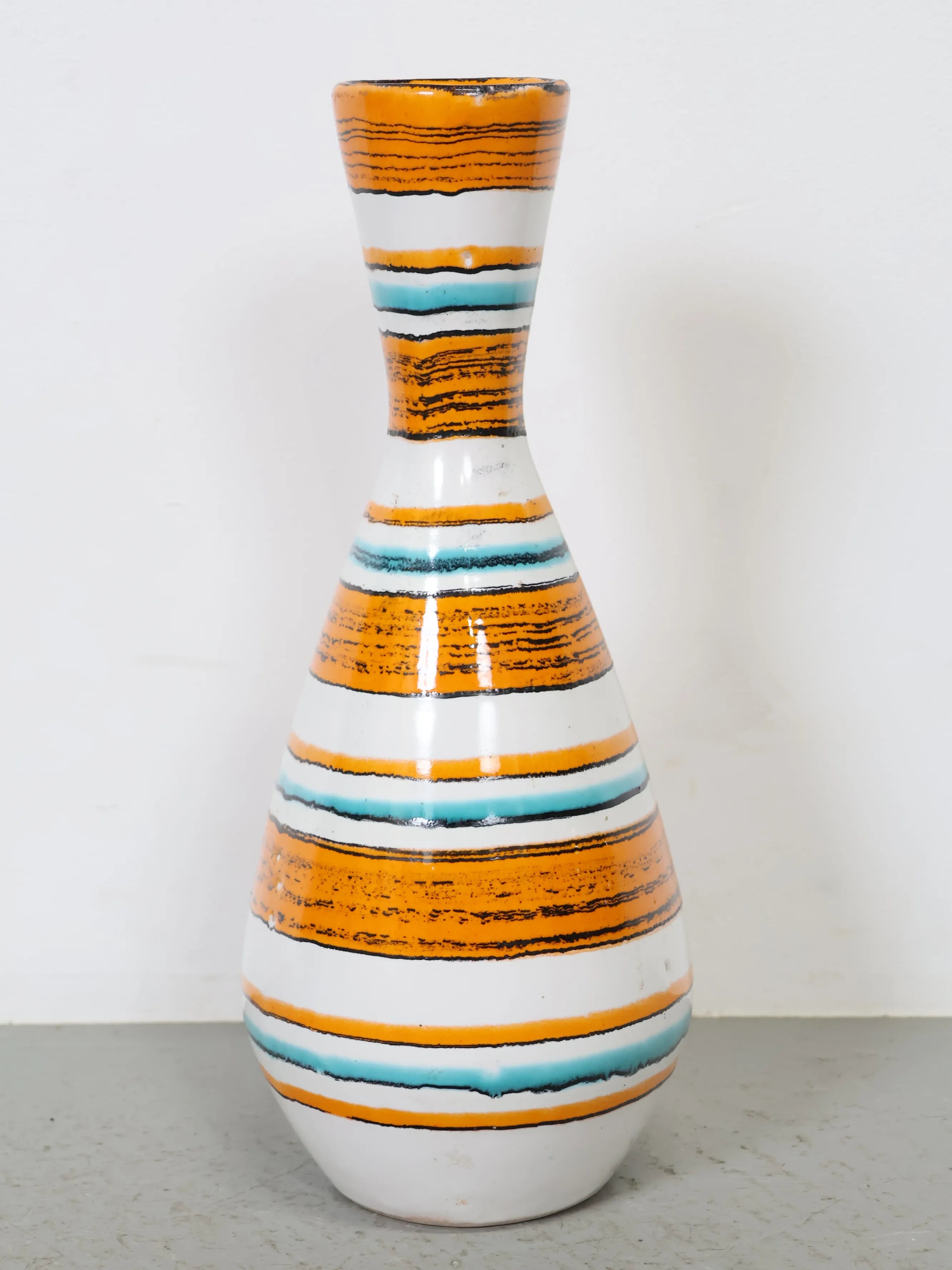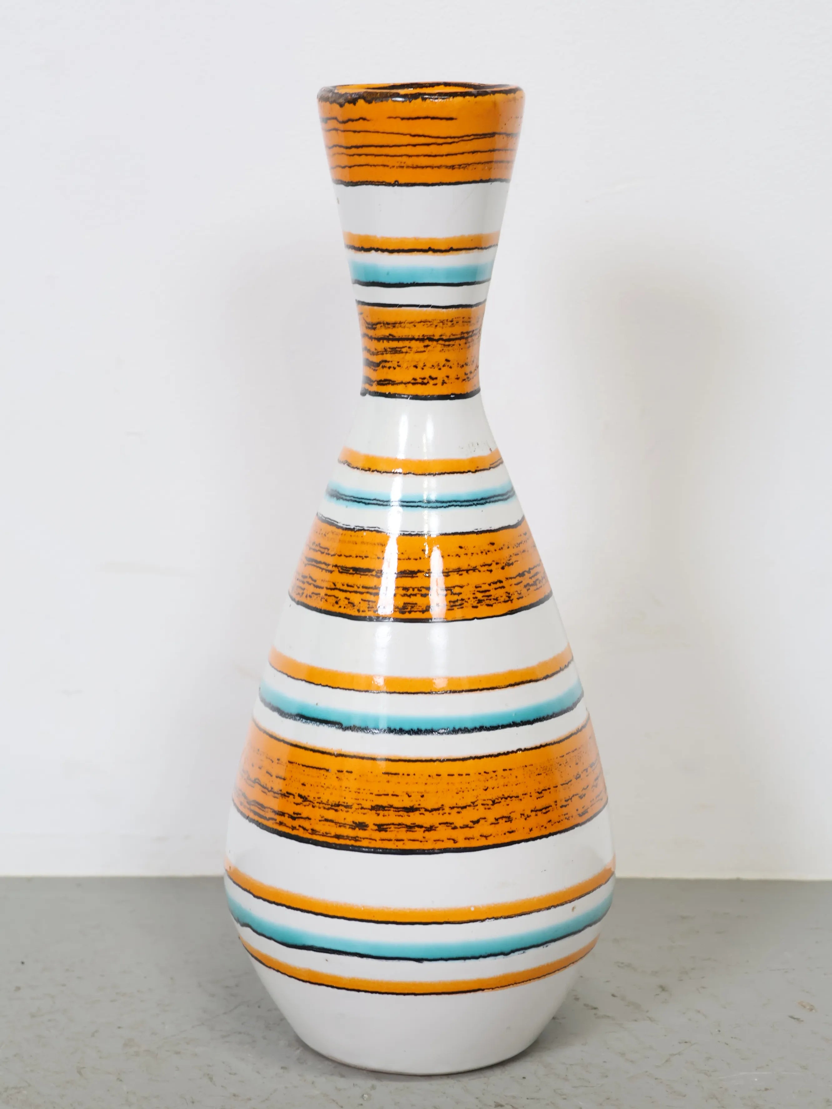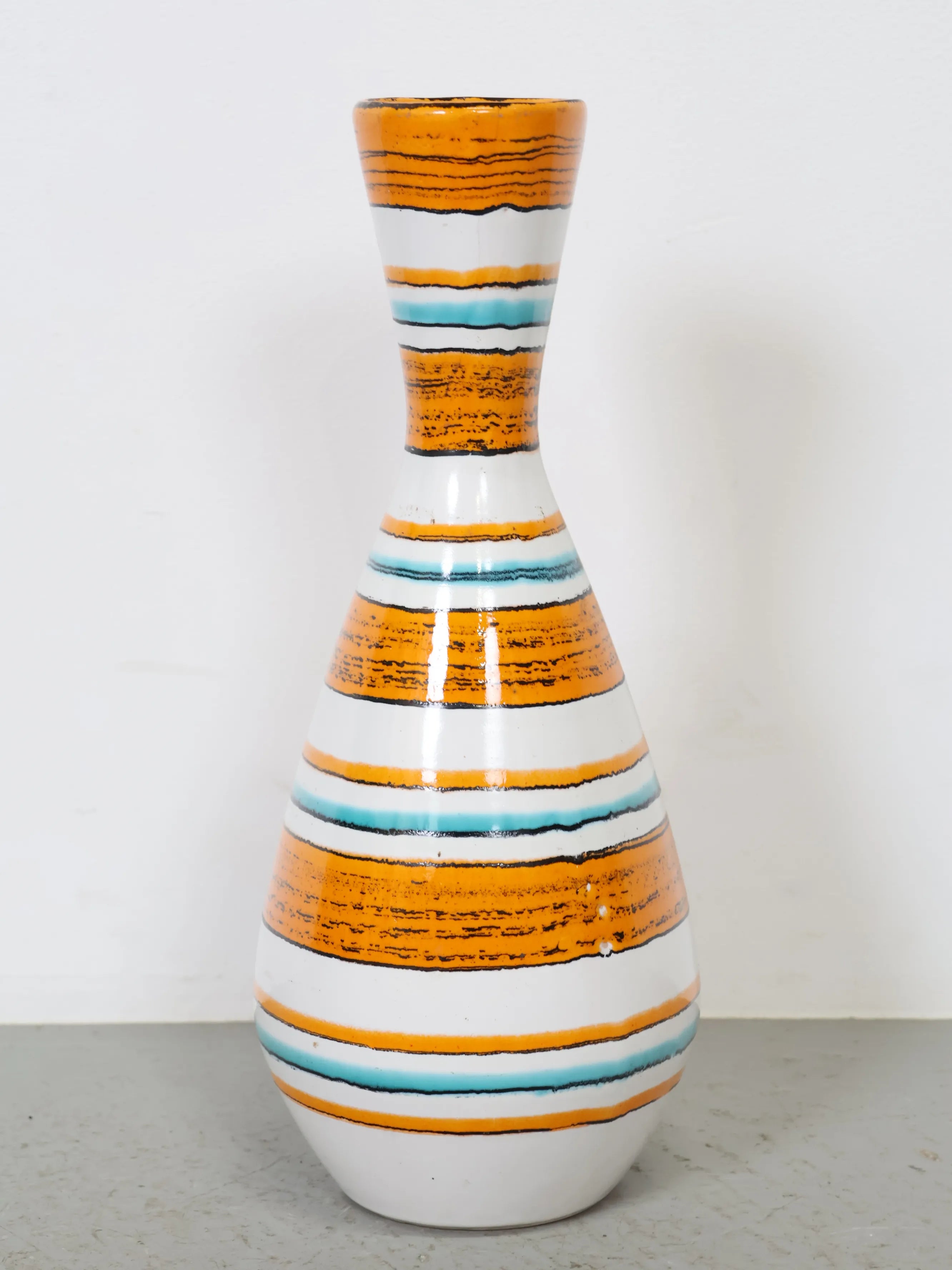 1960-70年代 ヴィンテージ Tófej(トーフェイ) セラミック フラワーベース 花瓶 ハンガリー製 オレンジ×ターコイズ ミッドセンチュリー