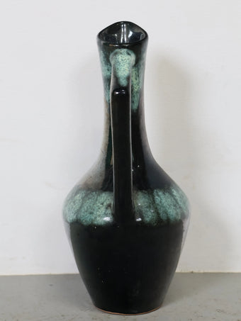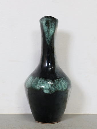 1960-70年代 ヴィンテージ Tófej(トーフェイ) セラミック フラワーベース 花瓶 ハンガリー製 グリーン×ブラック ミッドセンチュリー