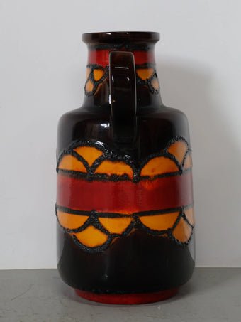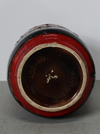 - 品名:Scheurich Fat Lava 花瓶 西ドイツ ヴィンテージ フラワーベース 408-40 ハンドル付き レッド×オレンジ×ダークブラウン ミッドセンチュリー