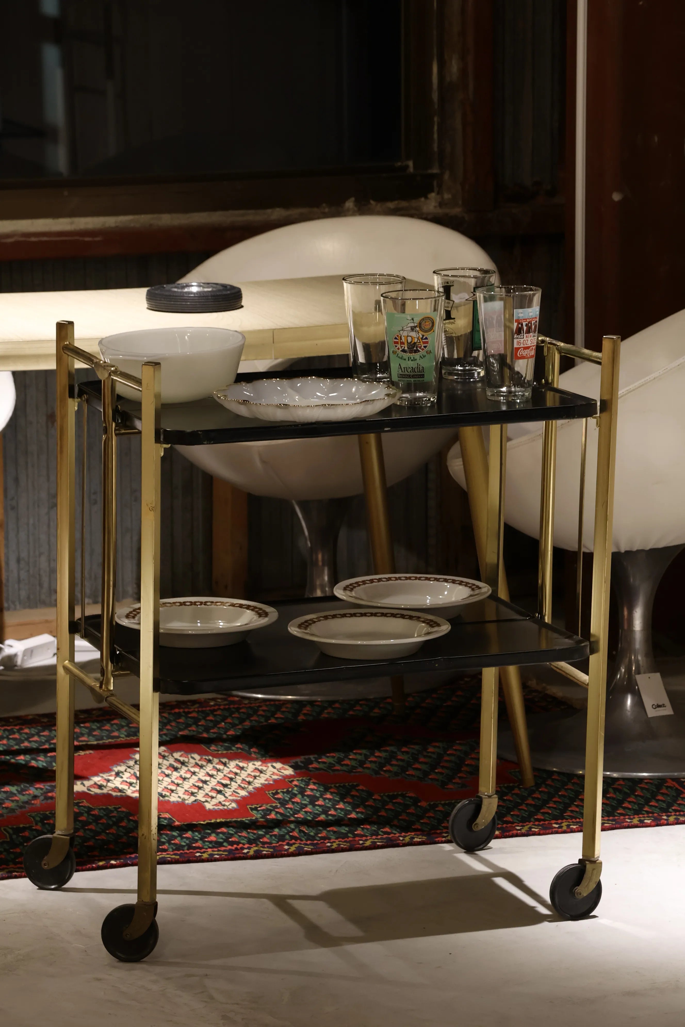 1950 - 60年代 Reylon社製 ヴィンテージ ブラック & ゴールドメタル フォルディング ティーカート