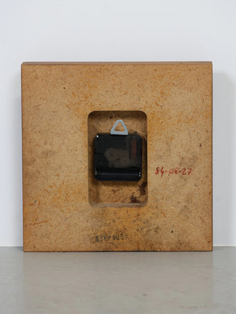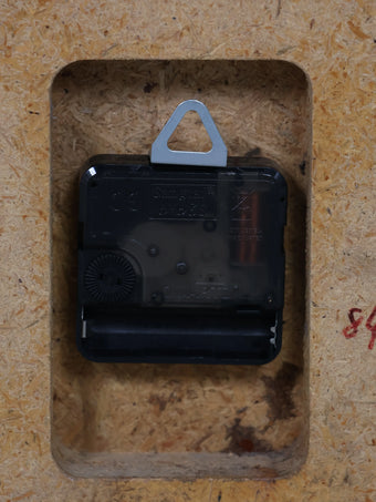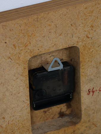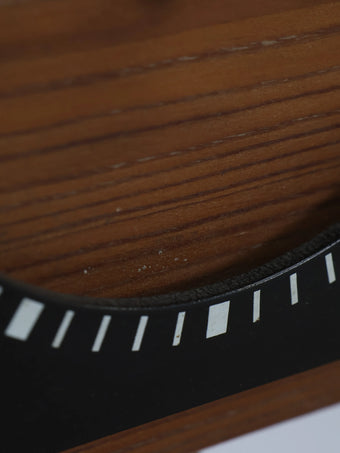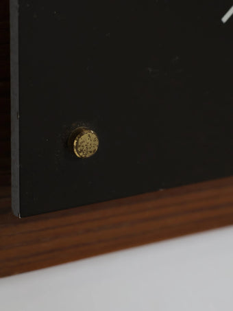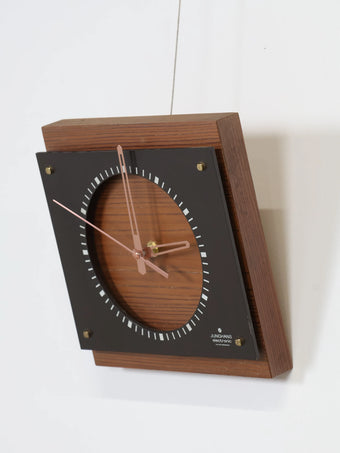 本体はウッドの表面に木目調のプラスチックが貼り付けられていて、プレート状のプラスチックの文字盤が立体的に組み合わさったユニークなデザイン。
