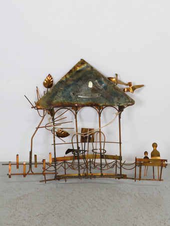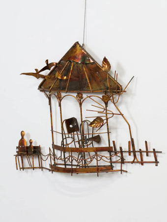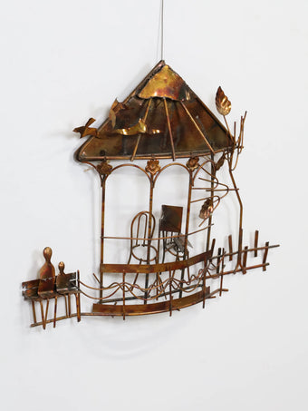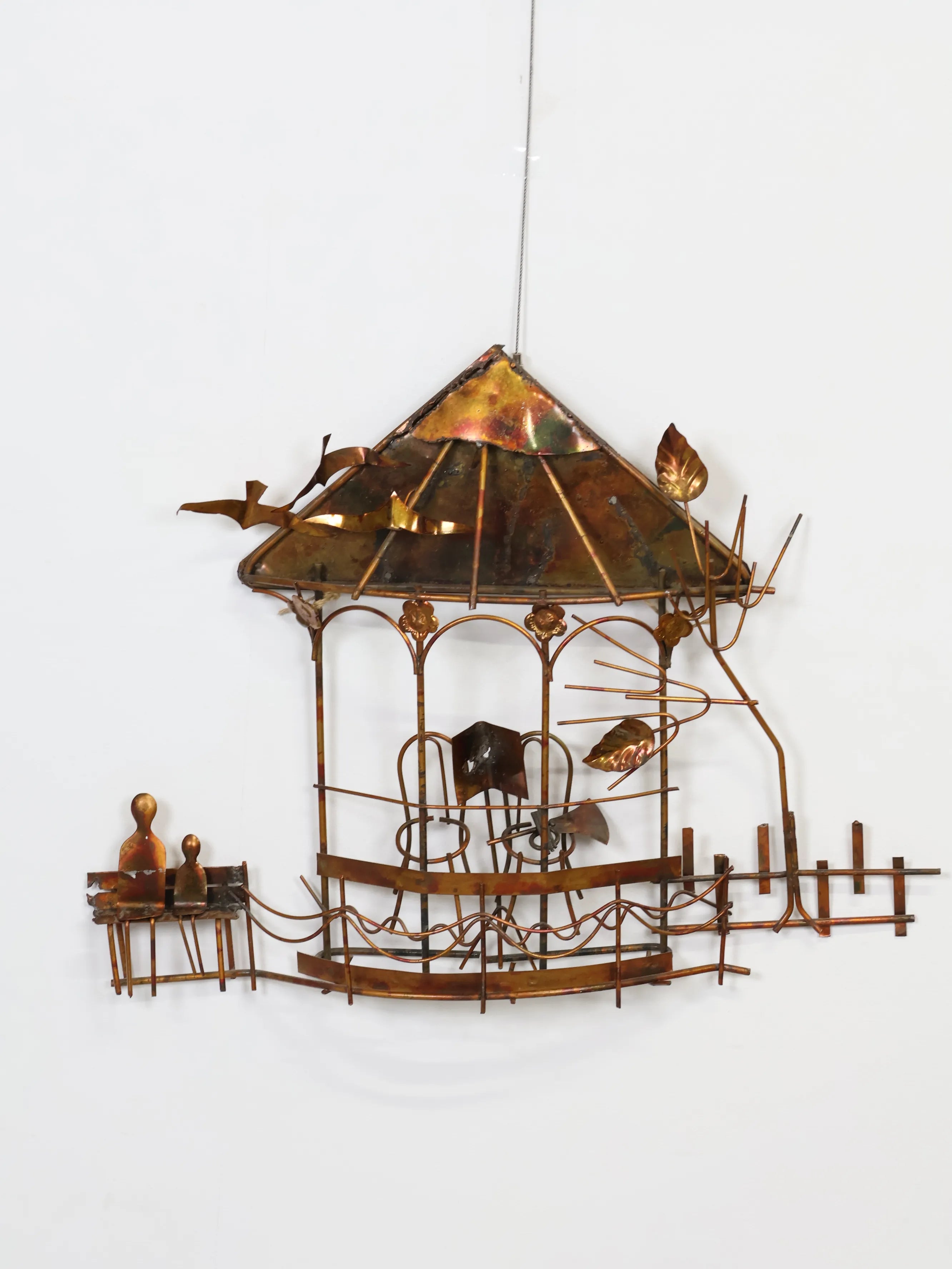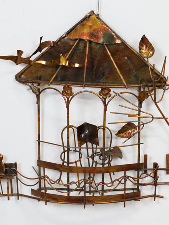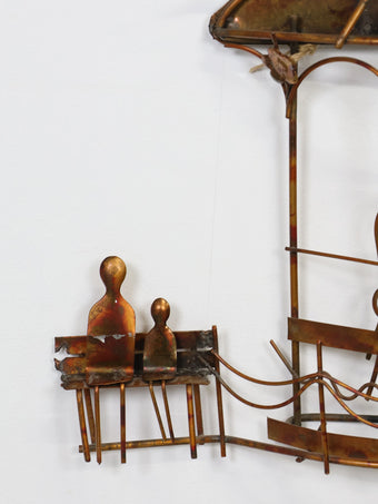 アメリカより買い付けました1970年代のEnesco社製 メタルパークシーンウォールスカルプチャーです。