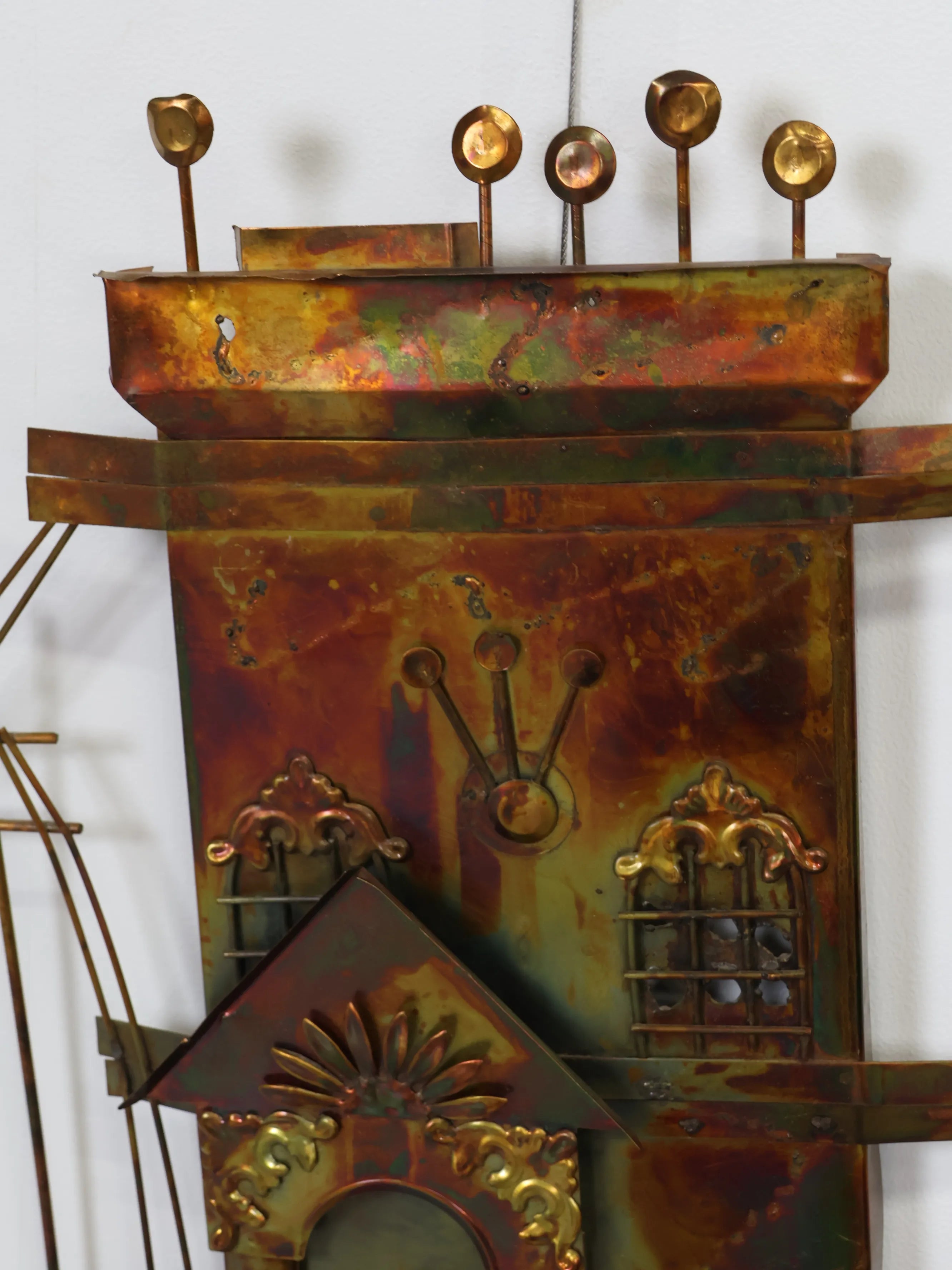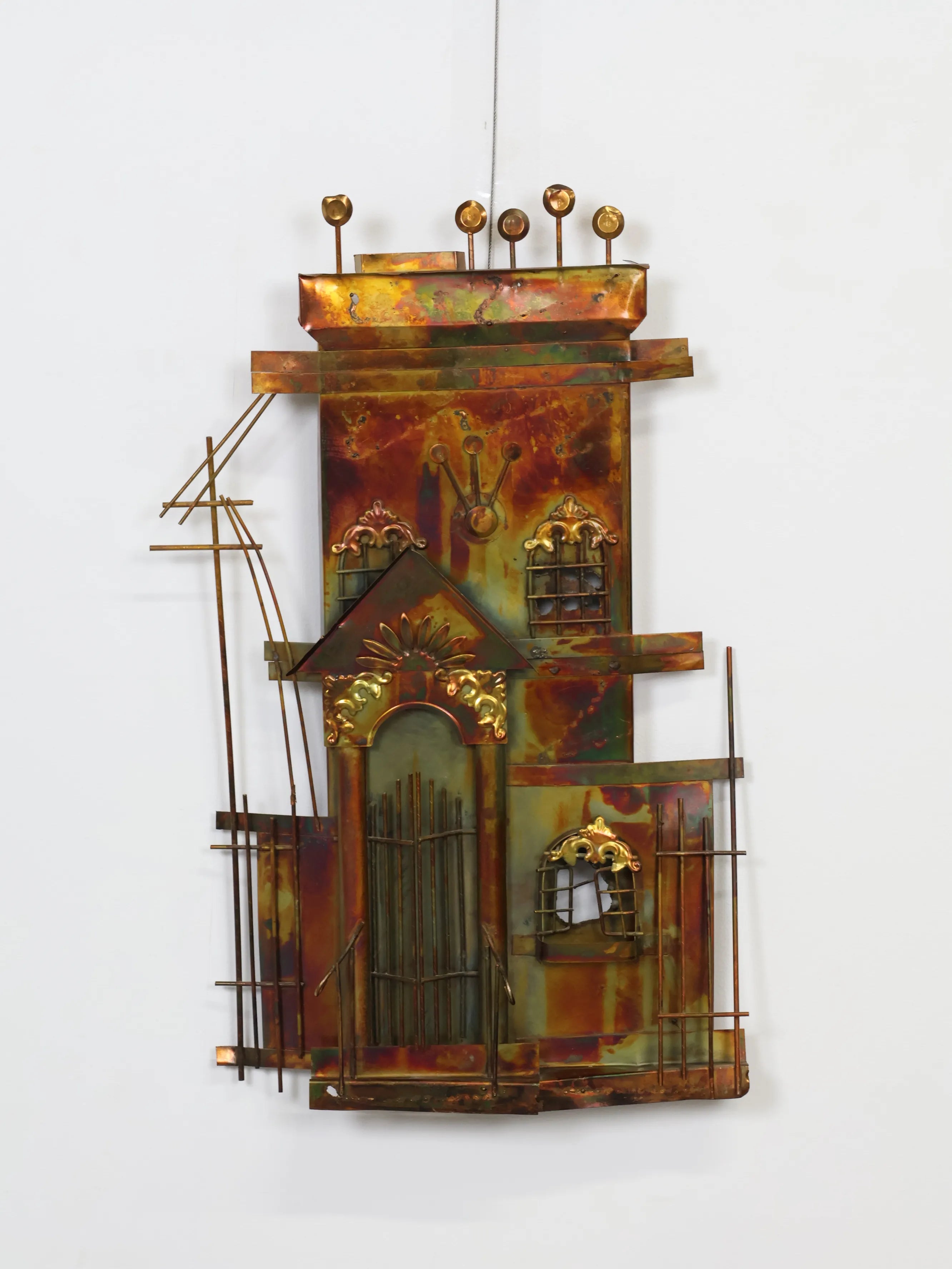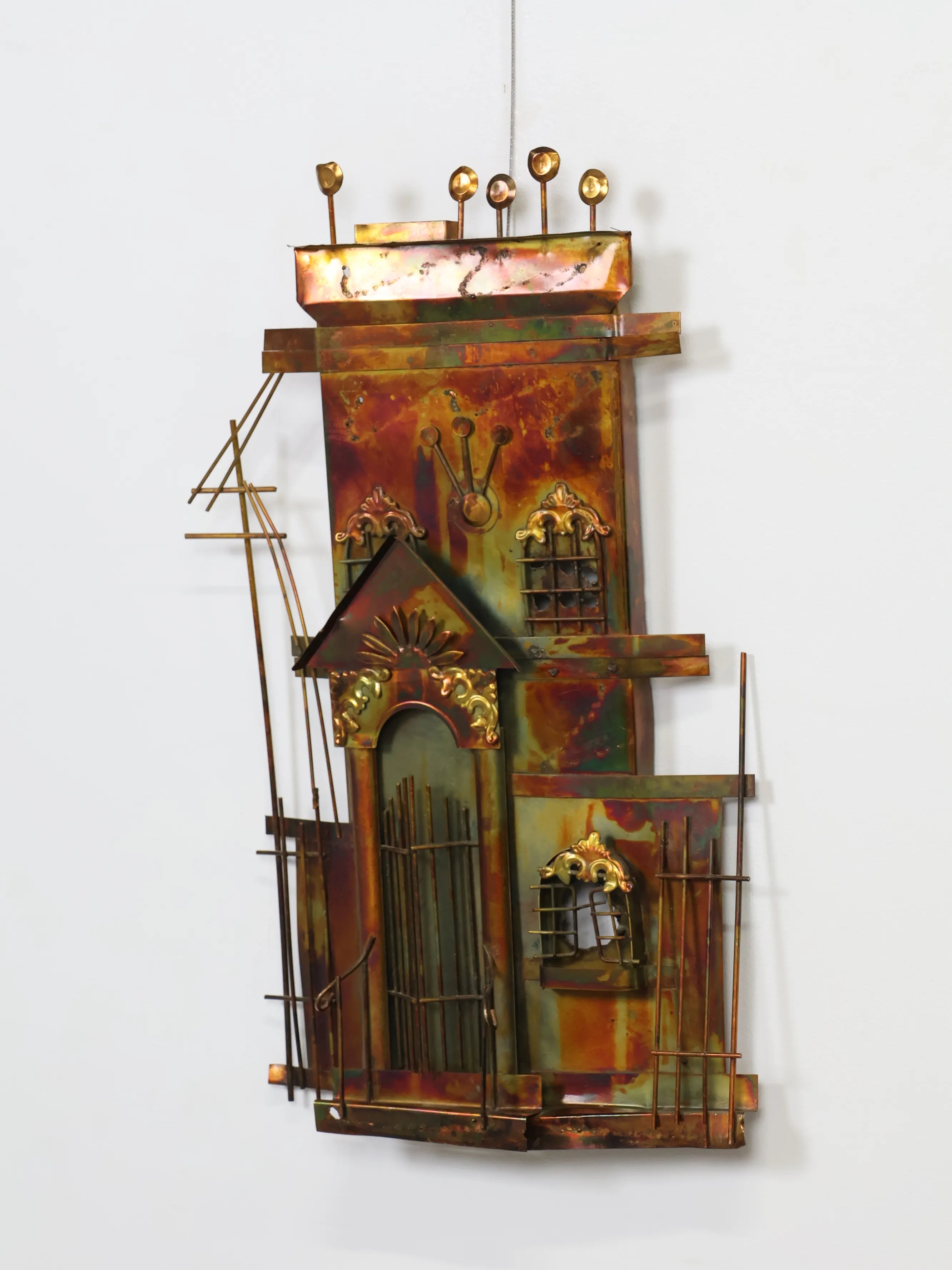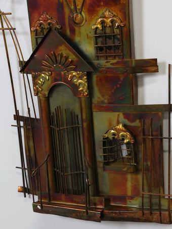 1980年代 Enesco社製 ヴィンテージ メタル ハウスモチーフ ウォール スカルプチャ