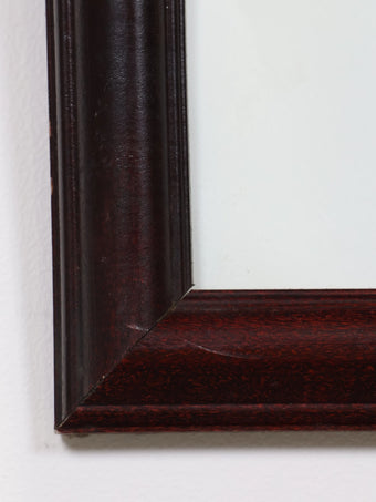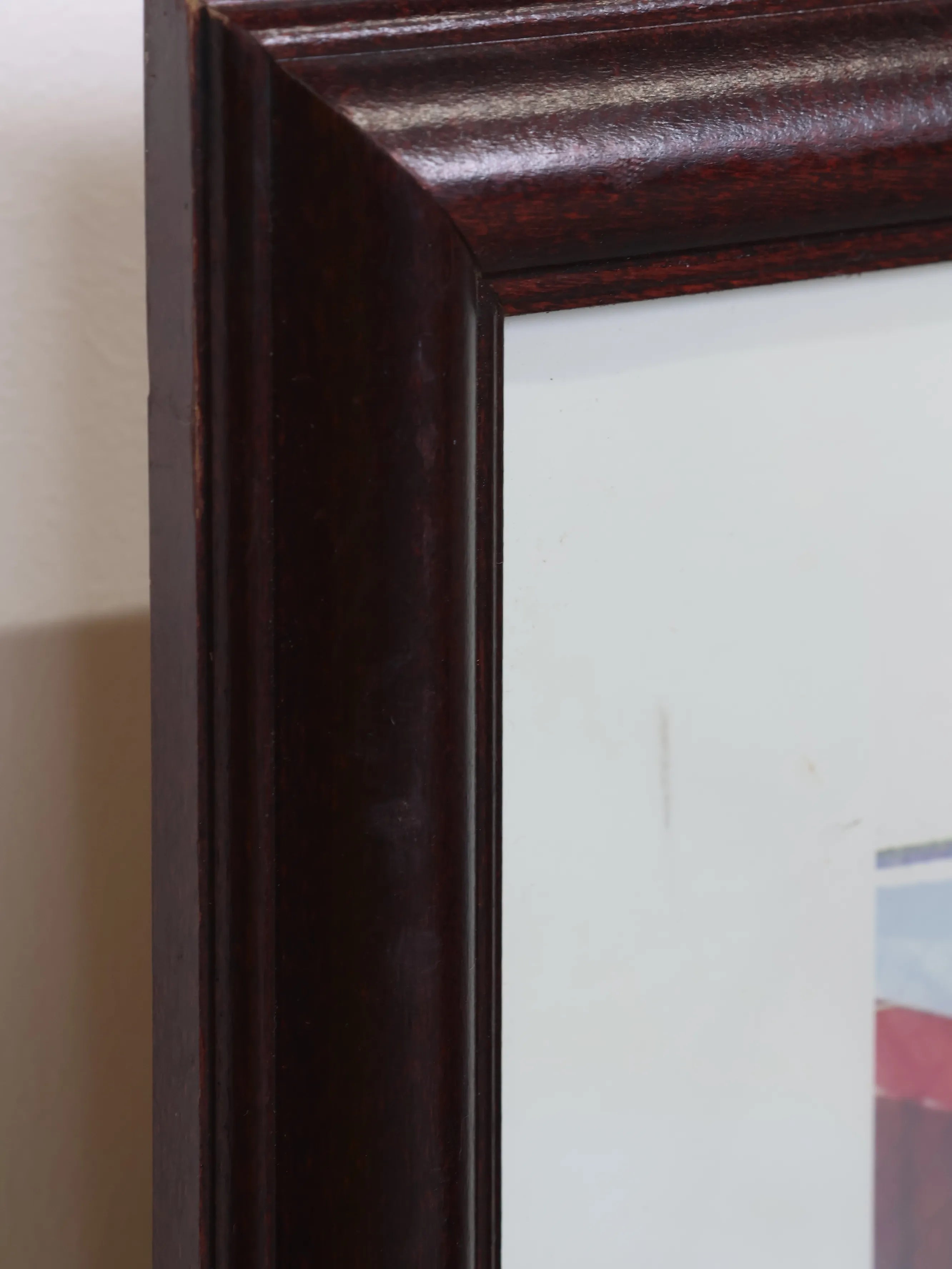 ポスターは落ち着いた色味のウッドフレームに収められており、全体を引き締めつつ、空間に程よい重厚感をプラスします。