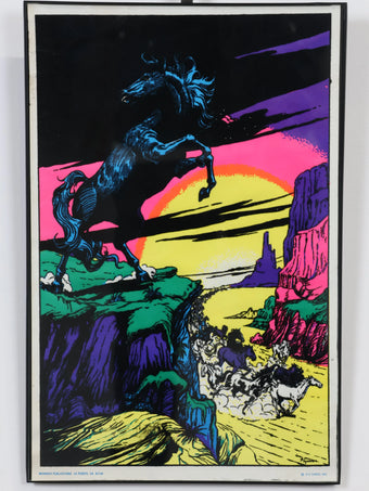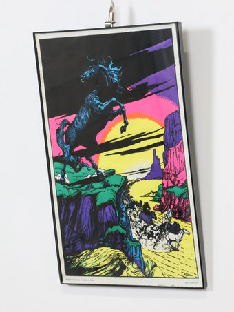 1970年代 ヴィンテージ メタルフレーム ホース ブラックライト ポスター