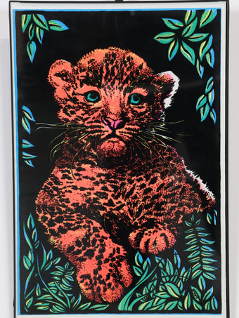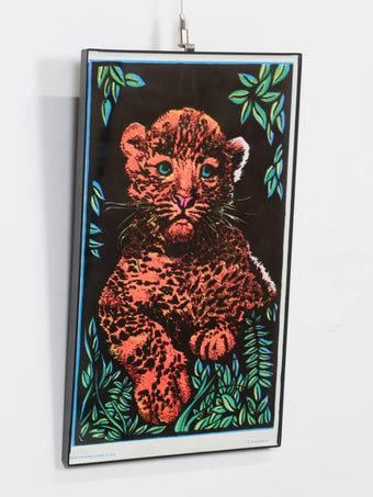 1970年代 ヴィンテージ メタルフレーム レオパード ブラックライト ポスター