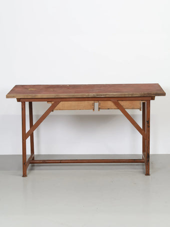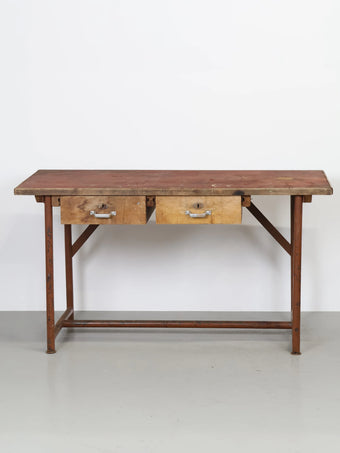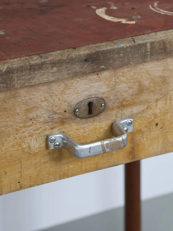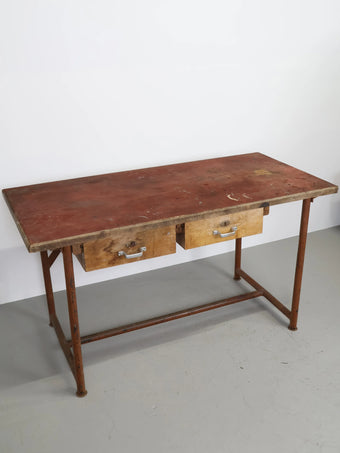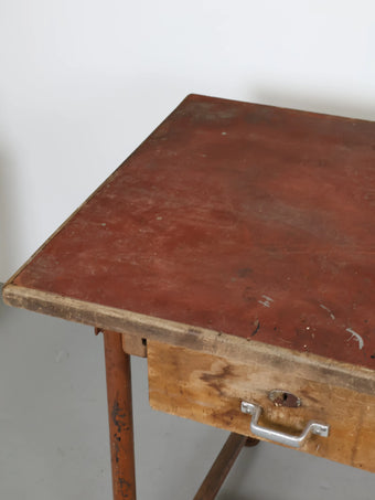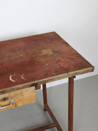 1940 - 50年代 ヴィンテージ ドロアー付き メタルベース ウッド ワーキング テーブル