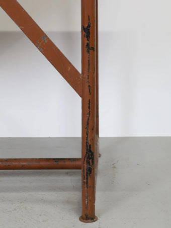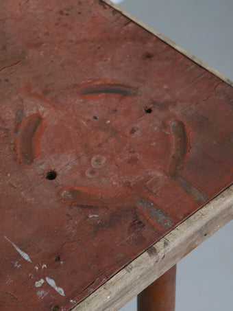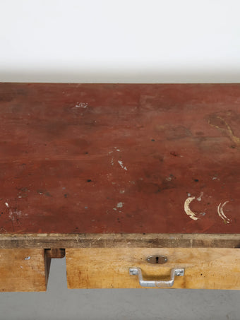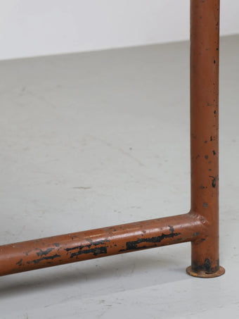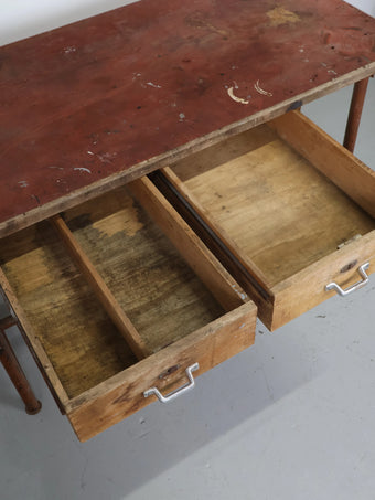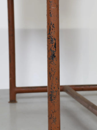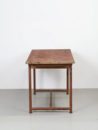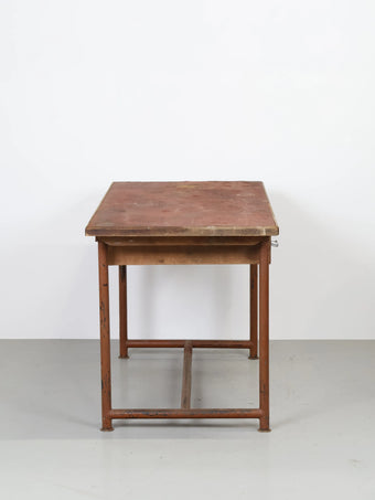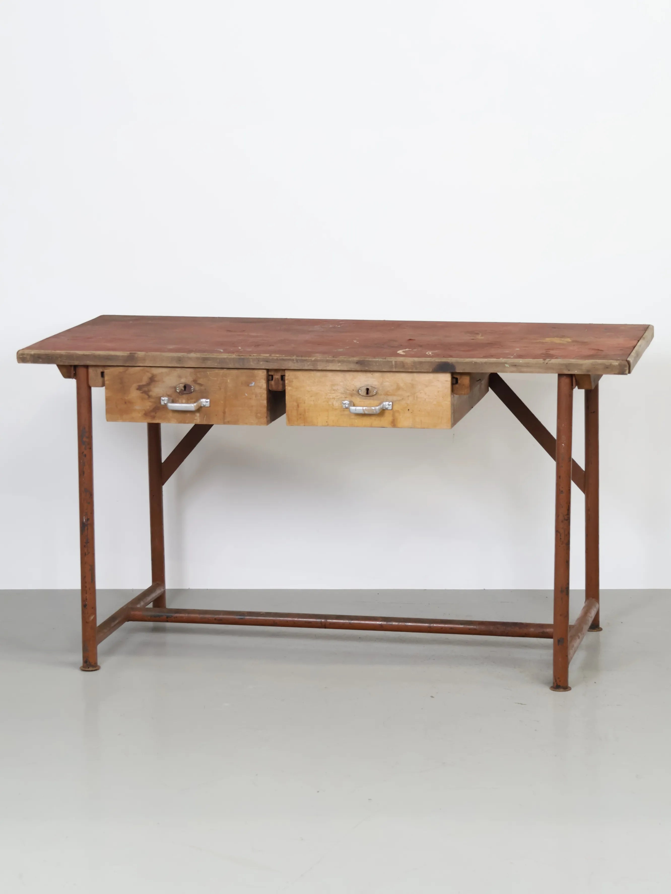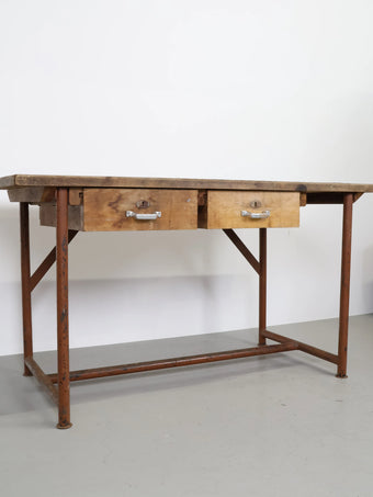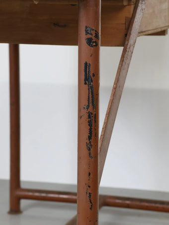 オランダより買い付けました1940年代-1950年代のドロアー付きメタルベースウッドワーキングテーブルです。