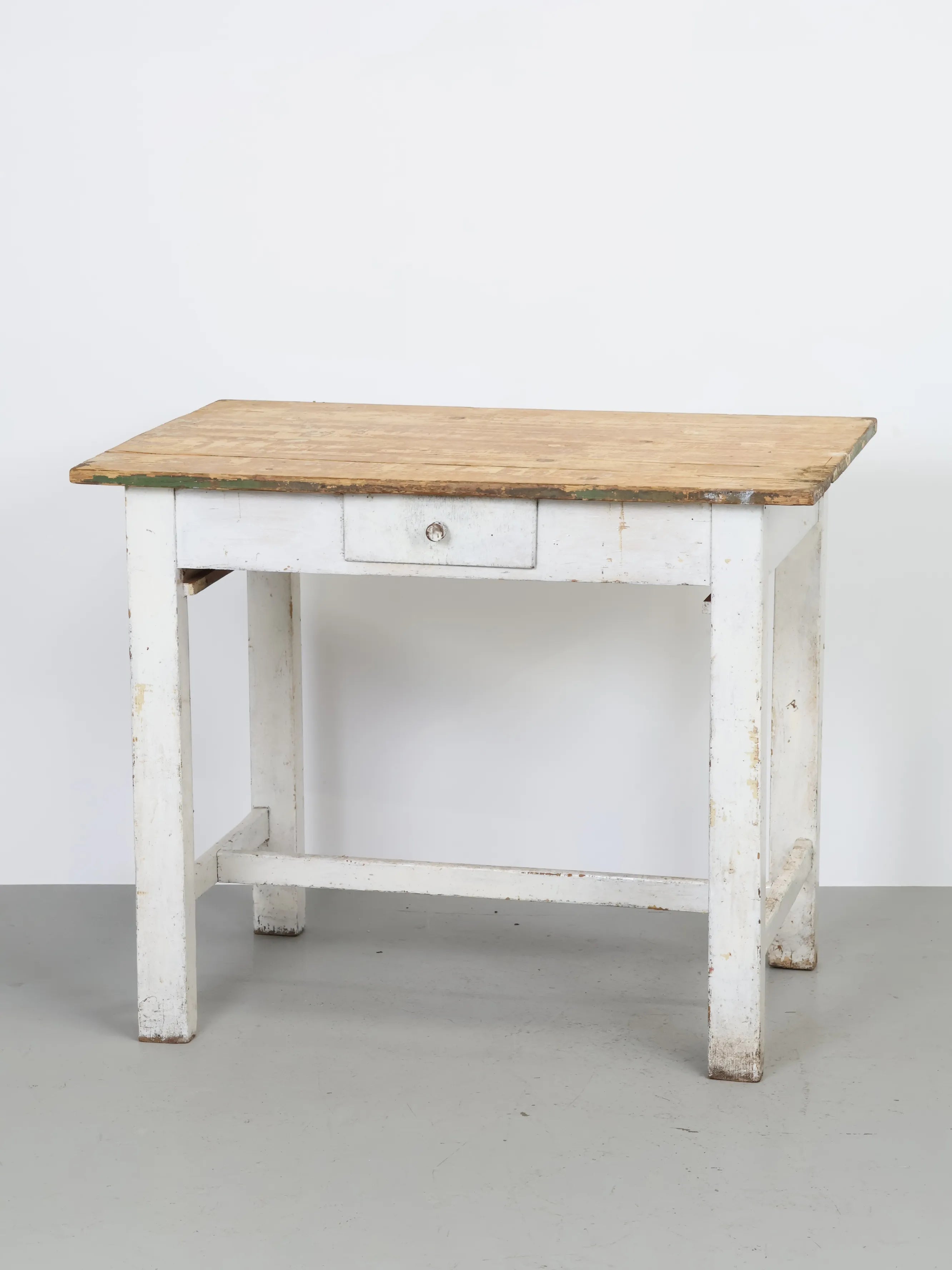 1960 - 70年代 ヴィンテージ ホワイトペイント ドロアー付き ウッド ワーキングテーブル