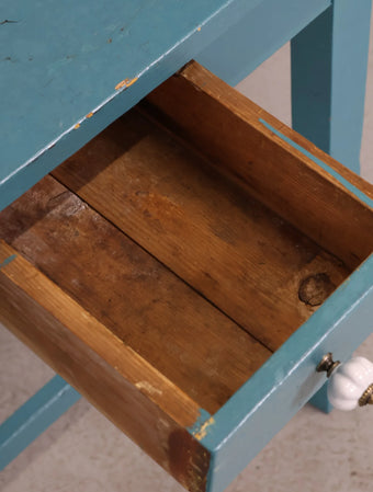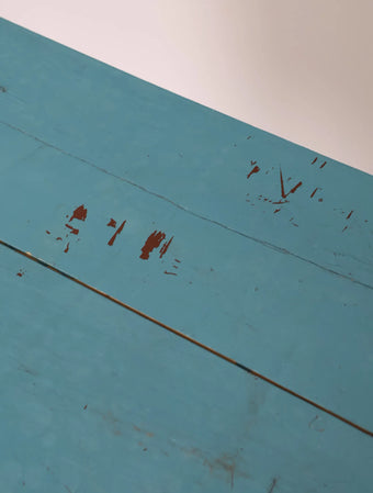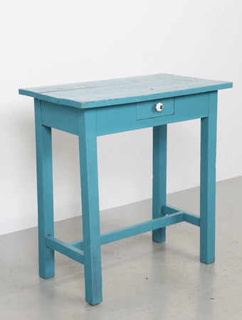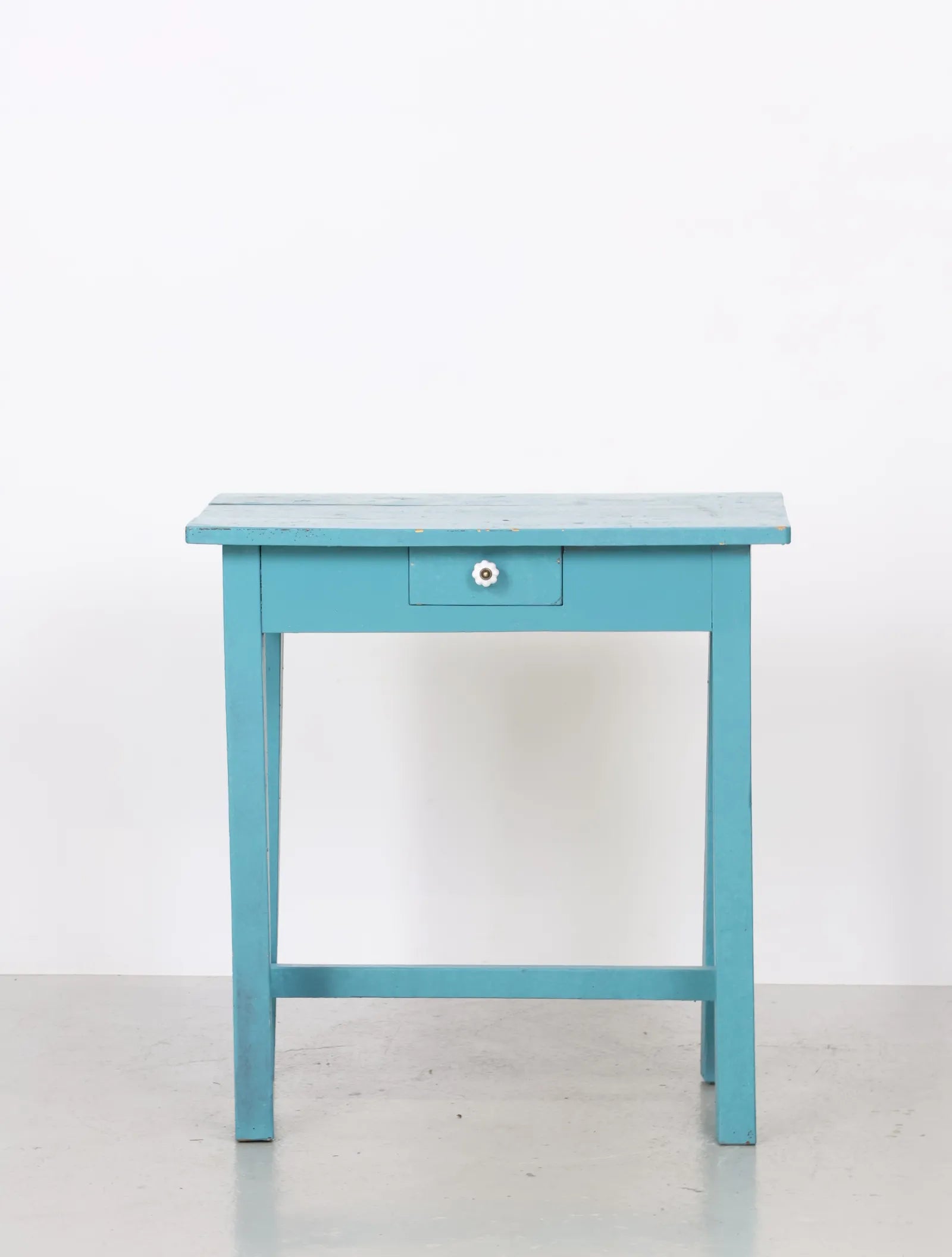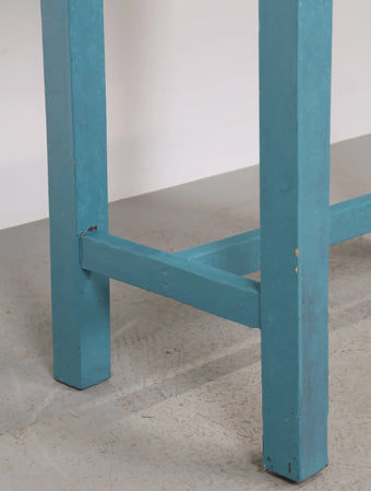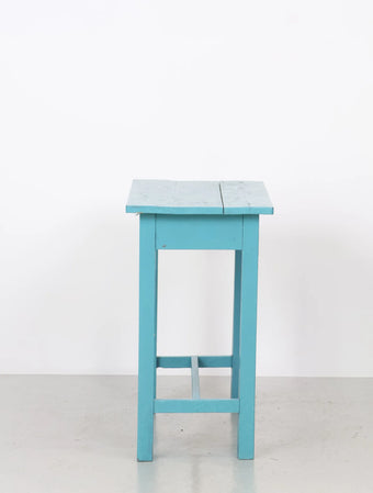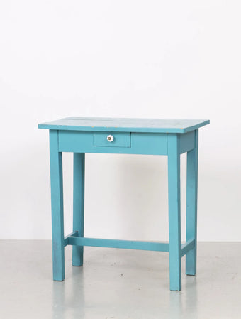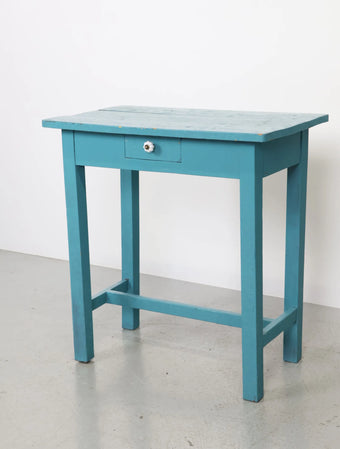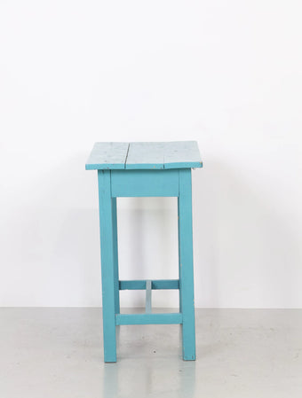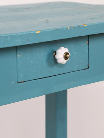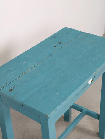 オランダより買い付けました1980年代のターコイズペイントウッドサイドテーブルです。