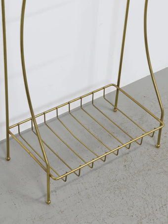 エレガントなゴールドのメタル素材を使用したボックス型のラックデザイン。
