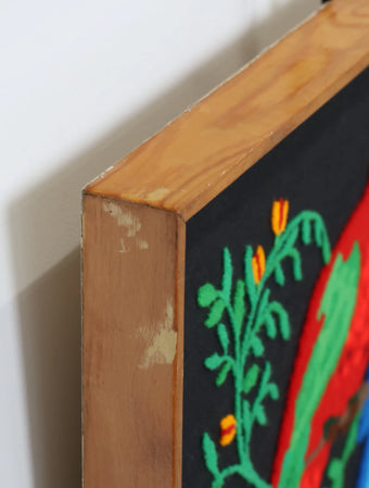 - 品名:ヴィンテージ ウッドフレーム オウムデザイン ファブリックアート ウォールデコ