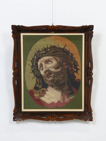 ファブリックで編み込まれて作られたジーザスの肖像画。