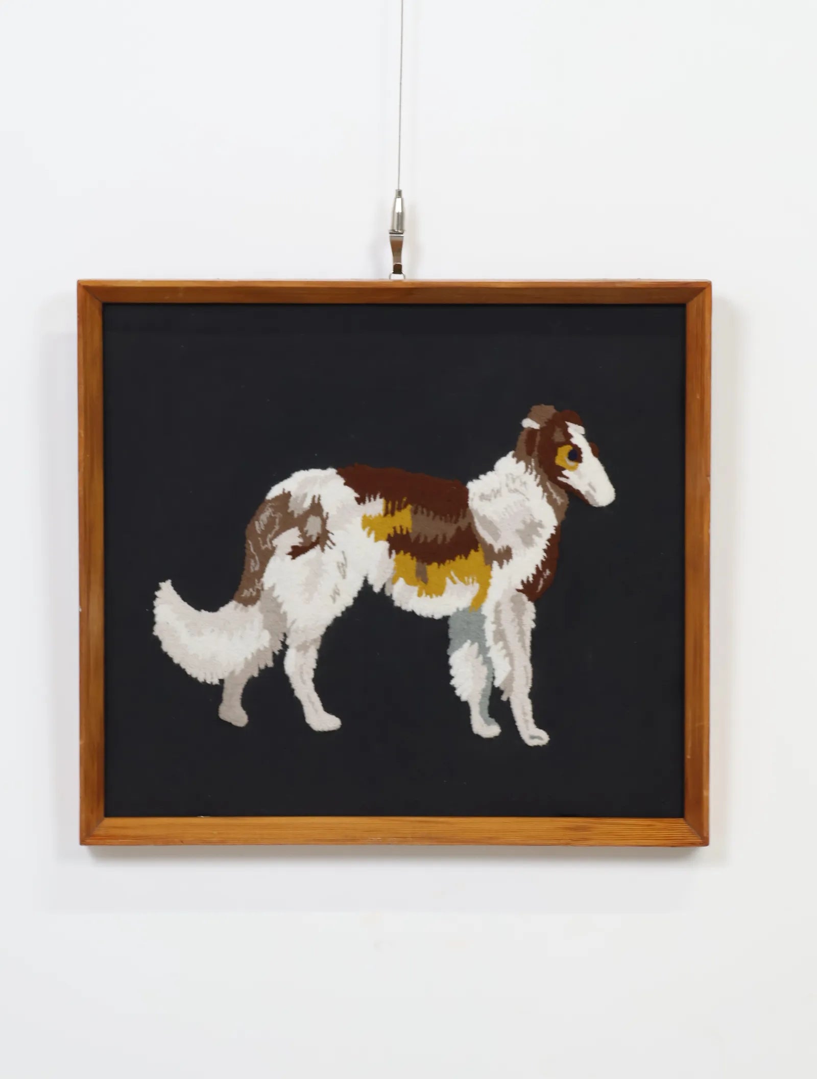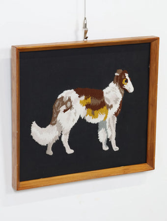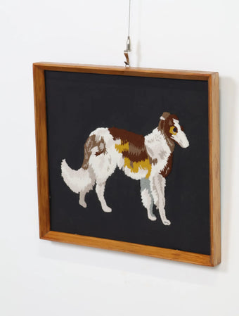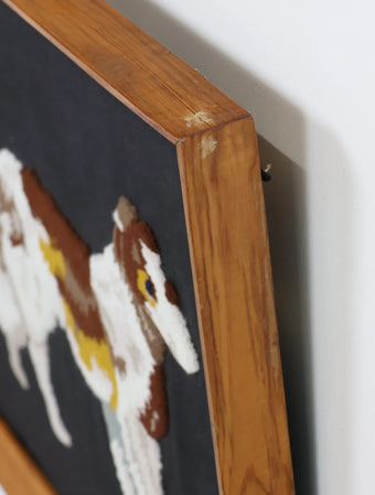 ヴィンテージ ウッドフレーム ドッグデザイン ファブリックアート ウォールデコ