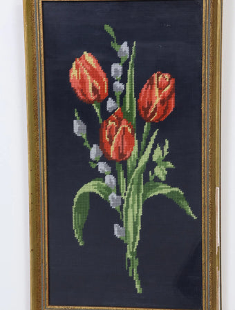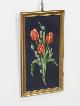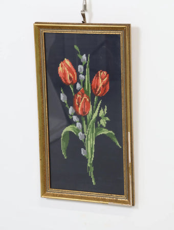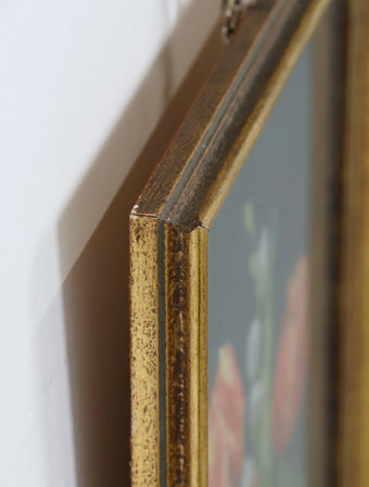 ヴィンテージ ウッドフレーム フラワーデザイン ファブリックアートウォールデコ