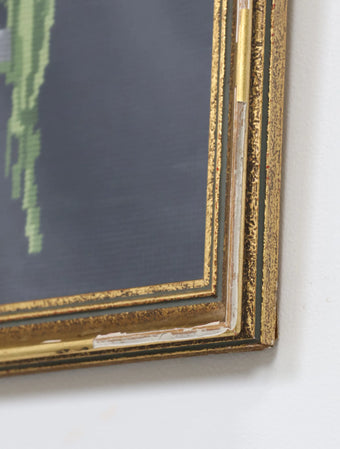 ファブリックで編み込まれたフラワーデザインを額装したウォールデコ。