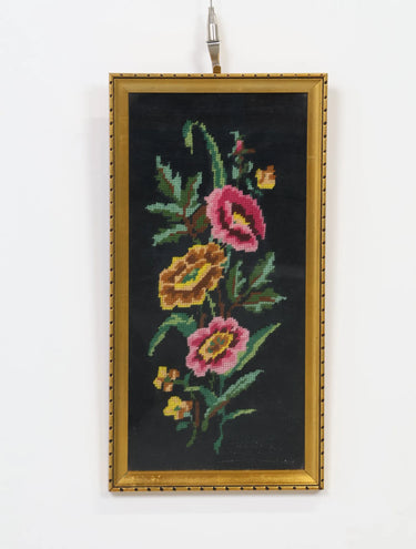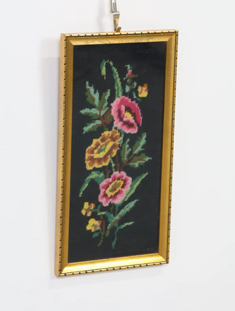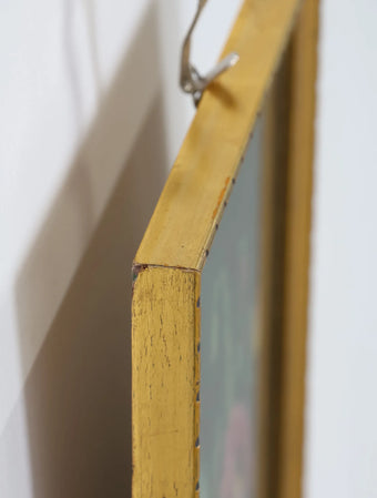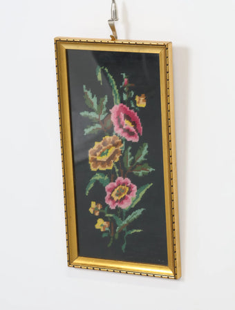 ヴィンテージ ウッドフレーム フラワーデザイン ファブリックアートウォールデコ