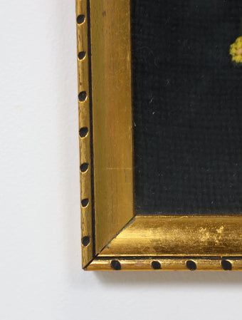 ファブリックで編み込まれたフラワーデザインを額装したウォールデコ。