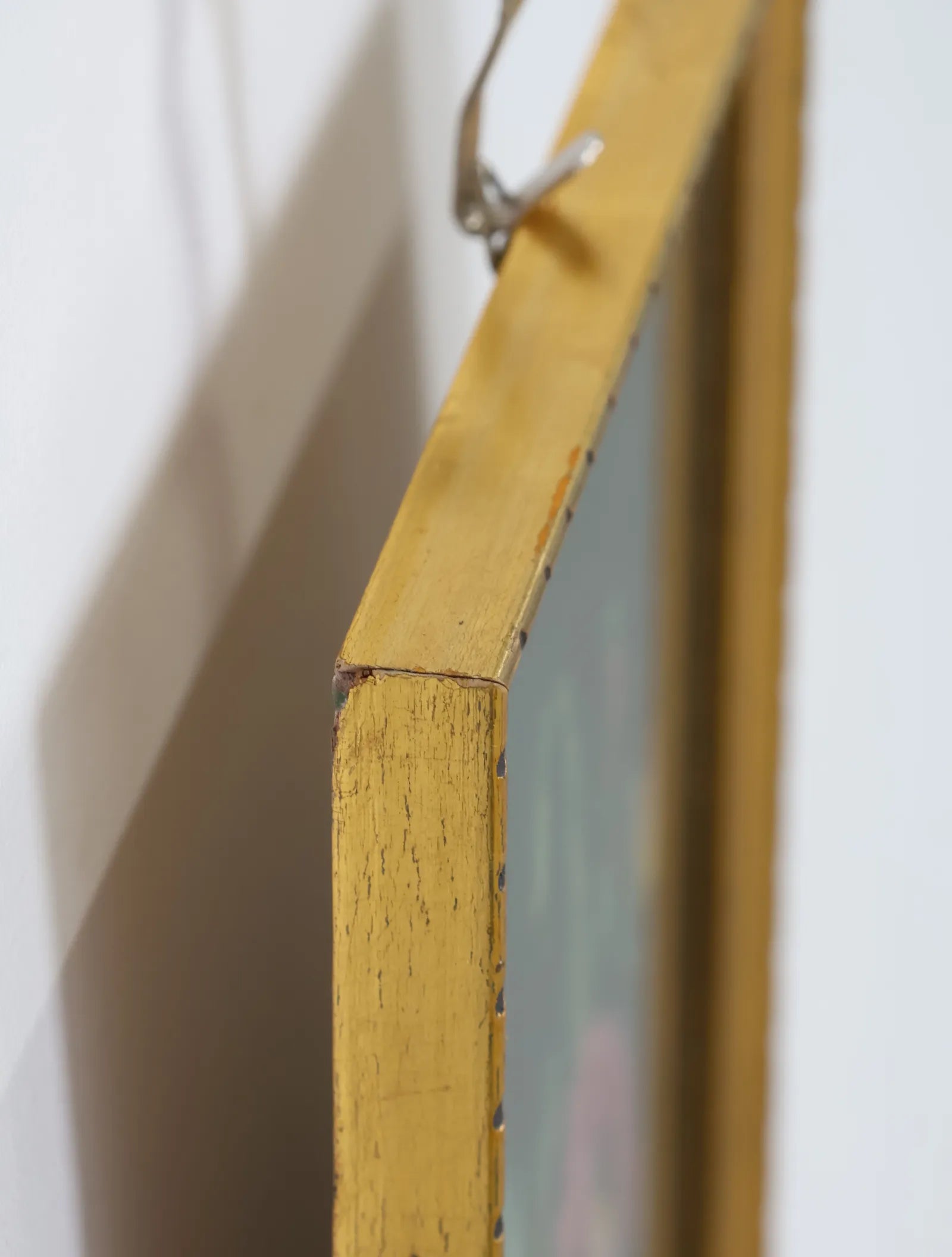 ヨーロッパより買い付けましたウッドフレームフラワーデザインファブリックアートウォールデコです。