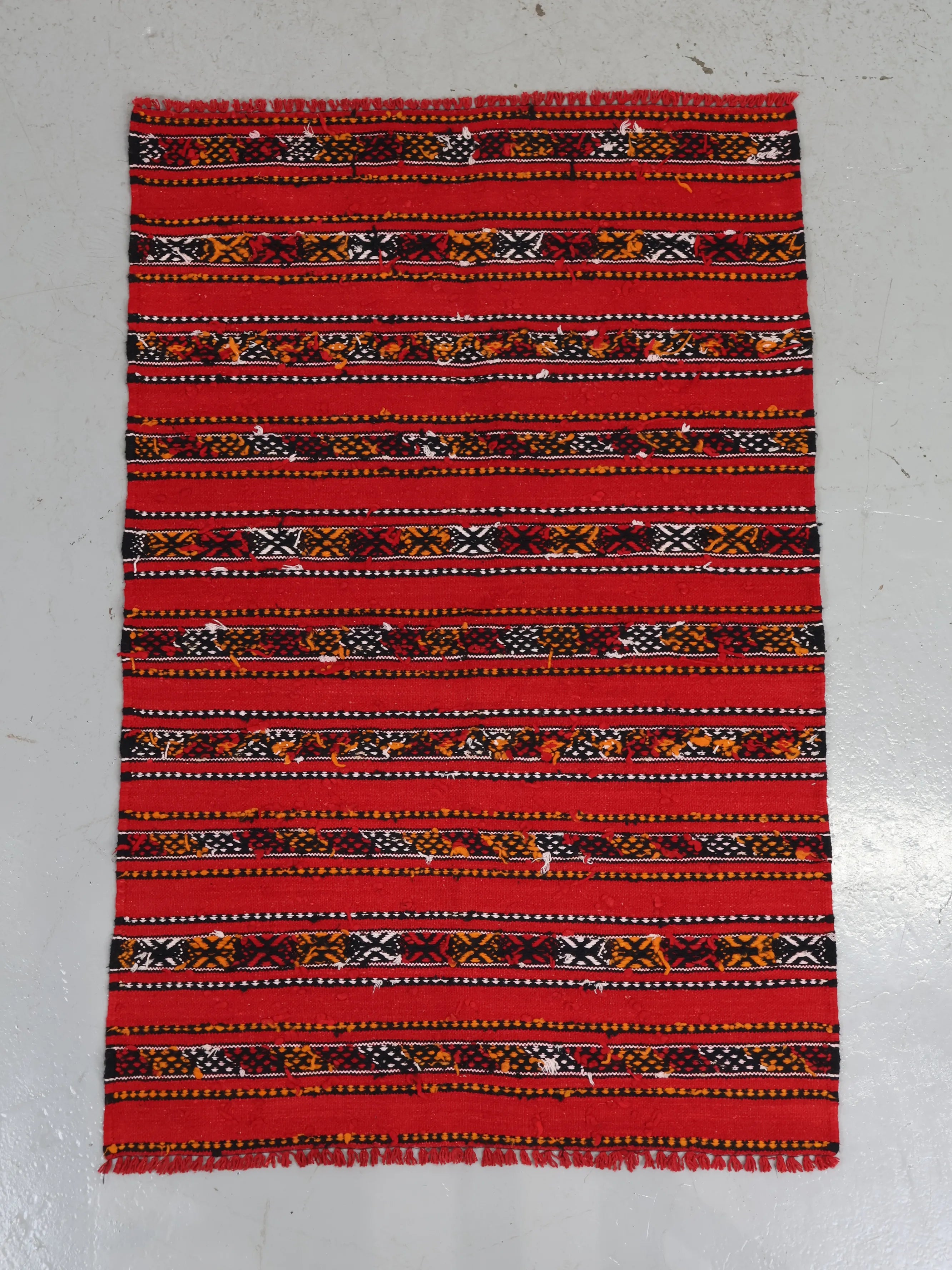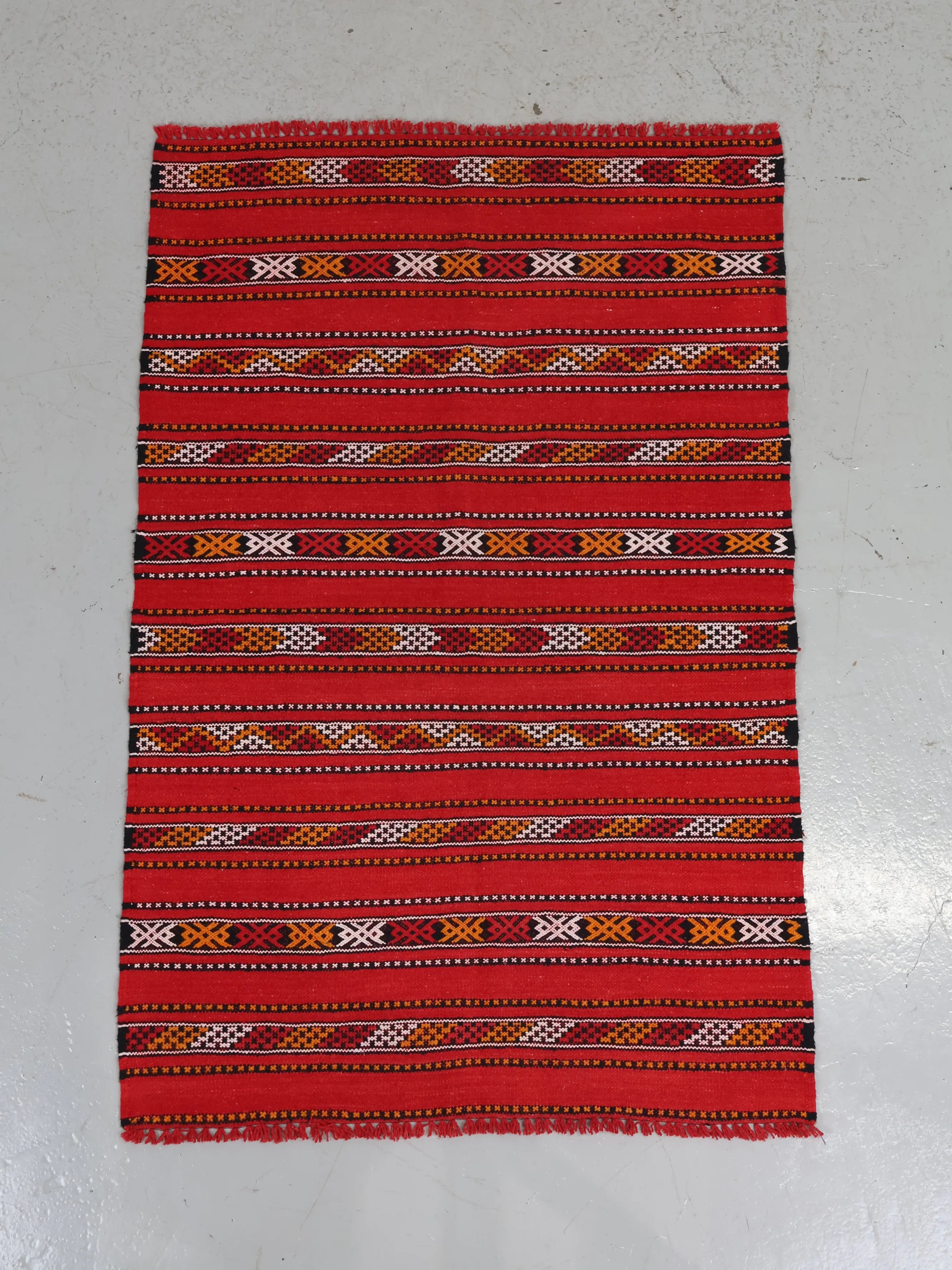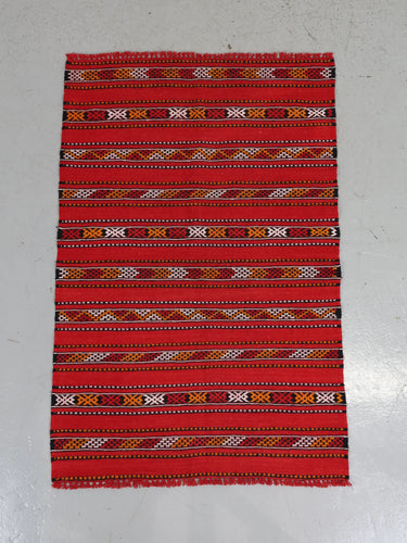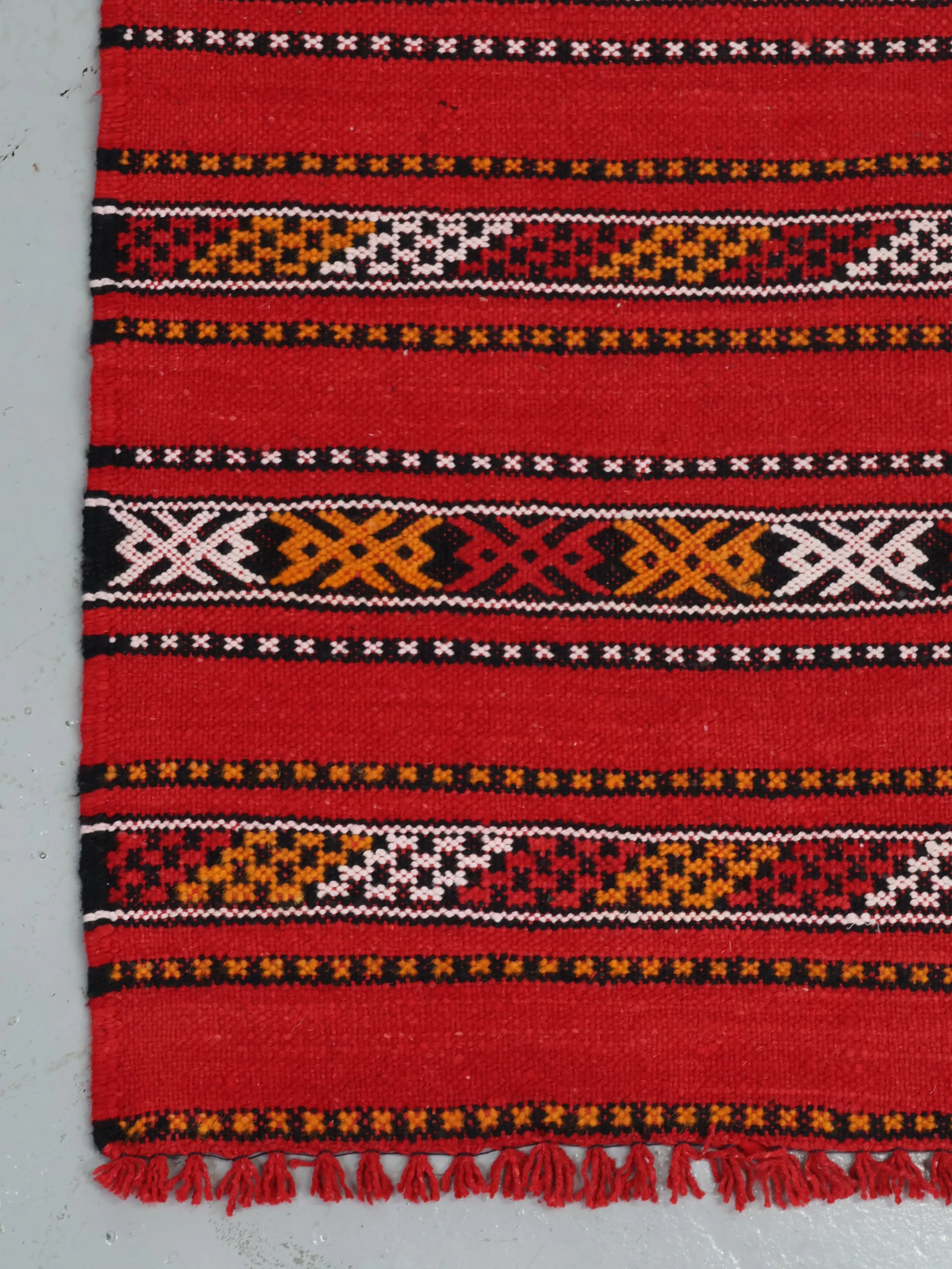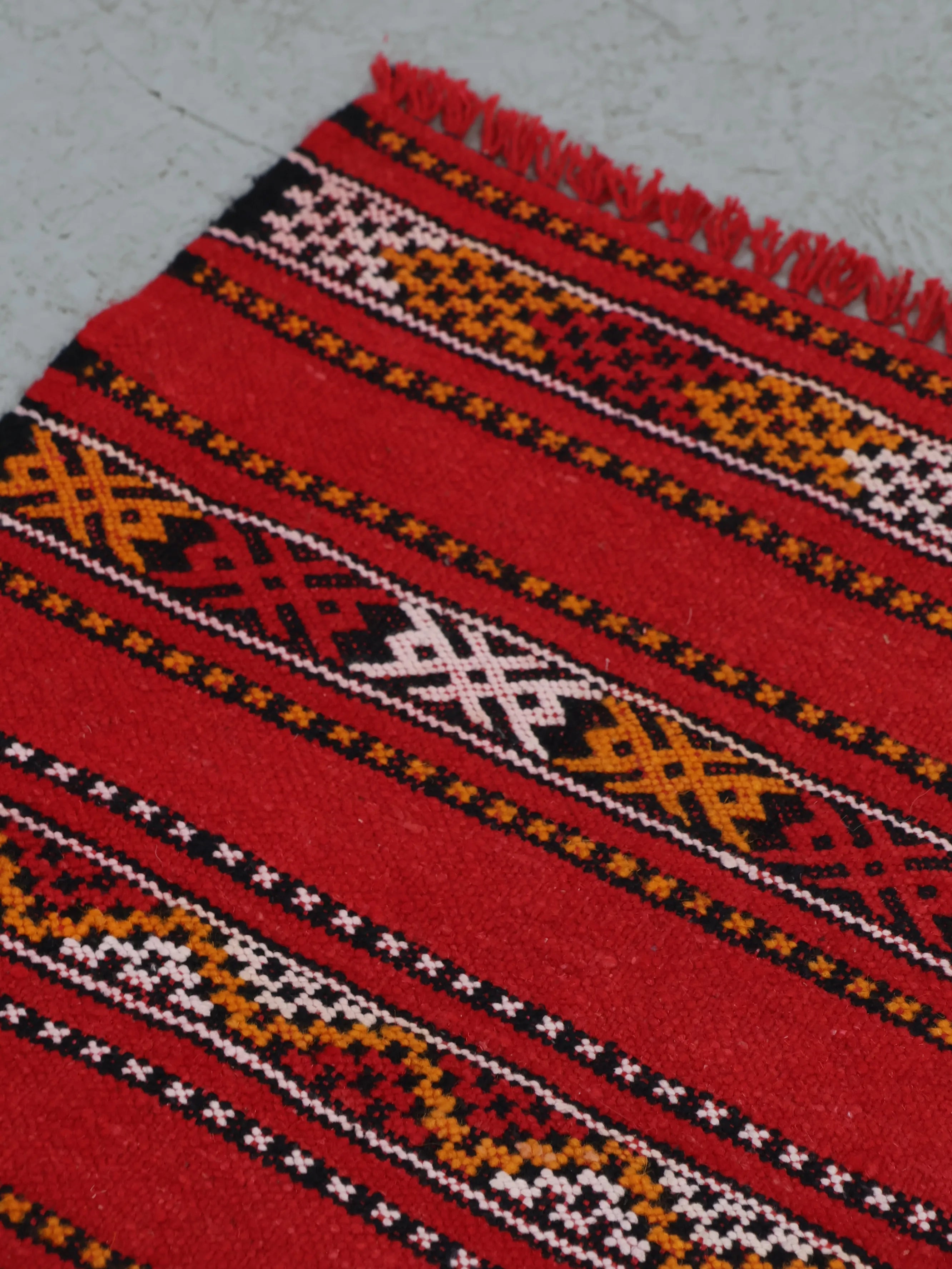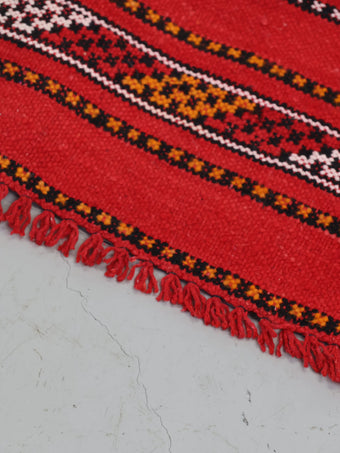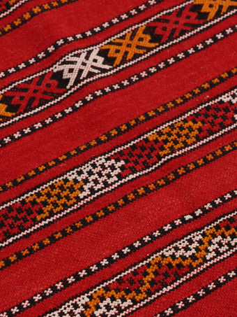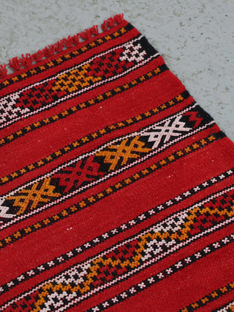 レッドを基調にモロッコならではの細やかなストライプ柄が織り込まれたデザイン。