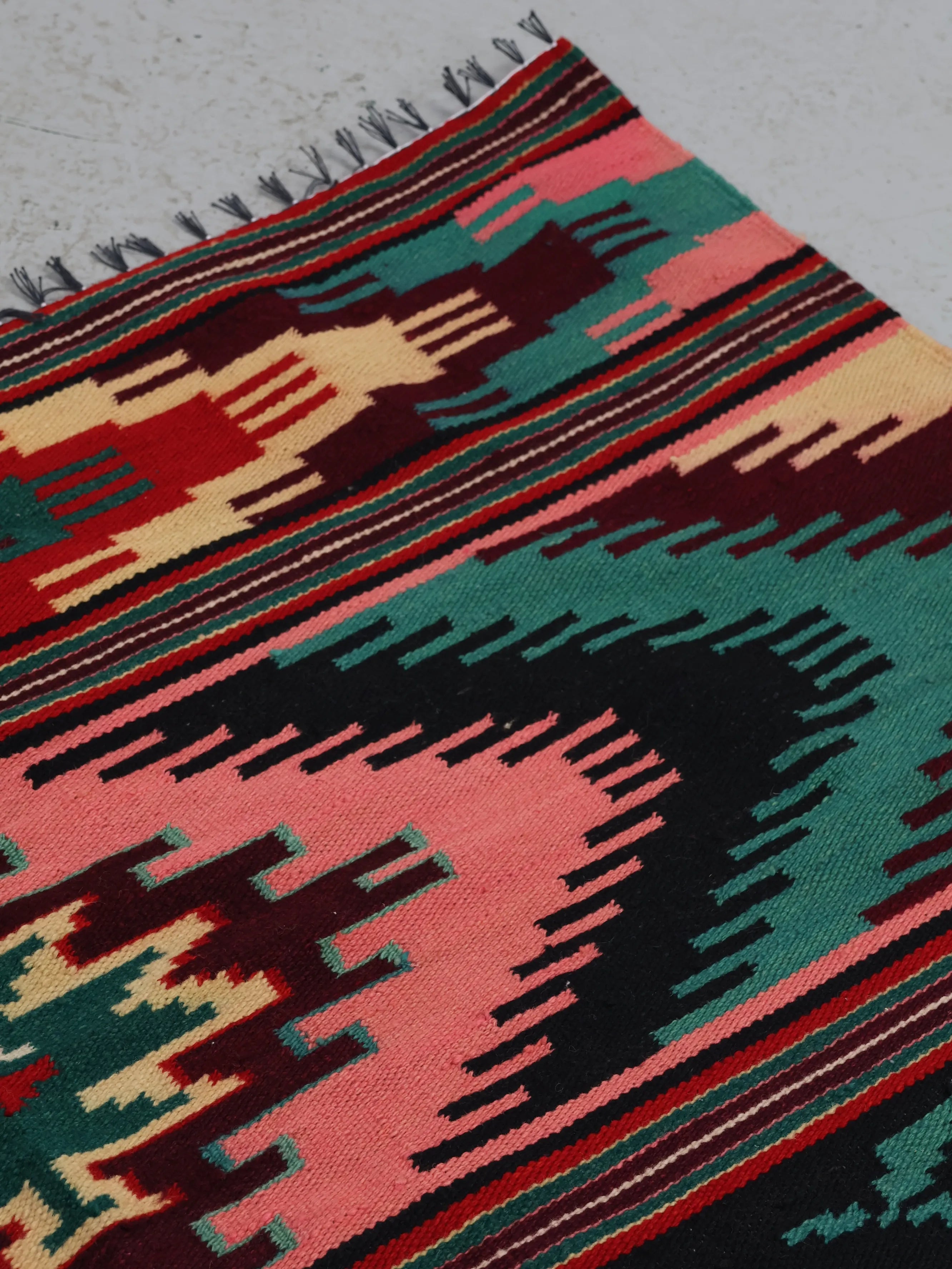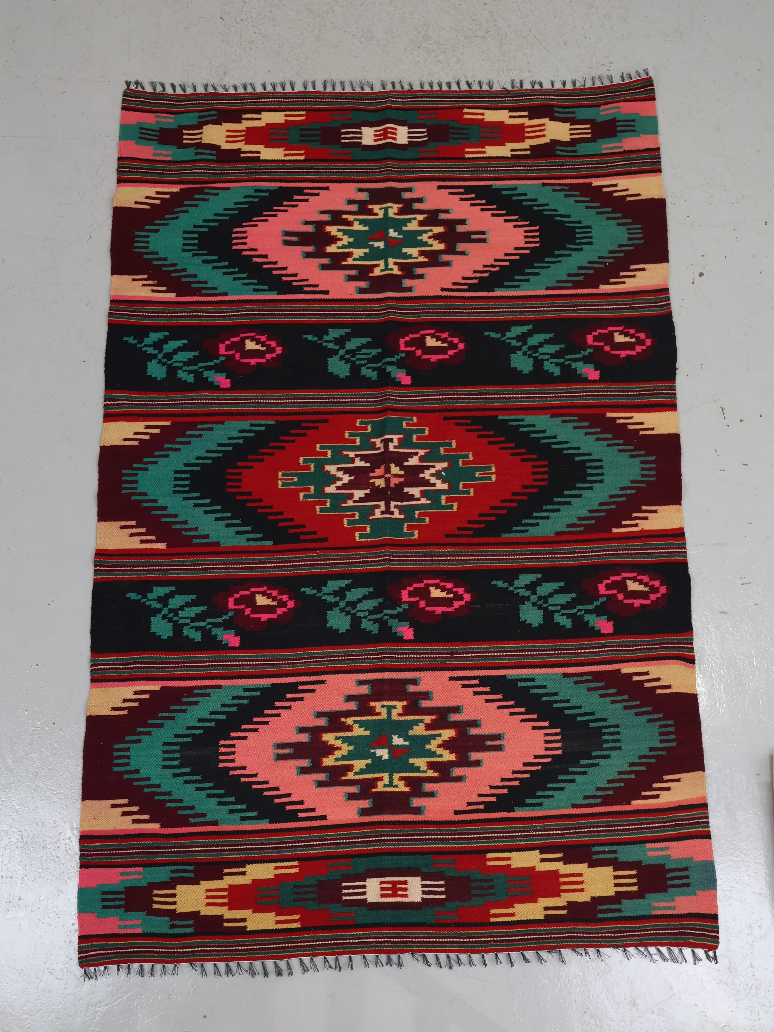 ヴィンテージ バルカン諸国 ハンドメイド ラグ キリム [1970 x 1300]