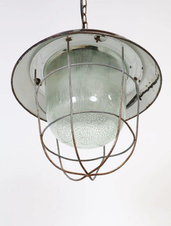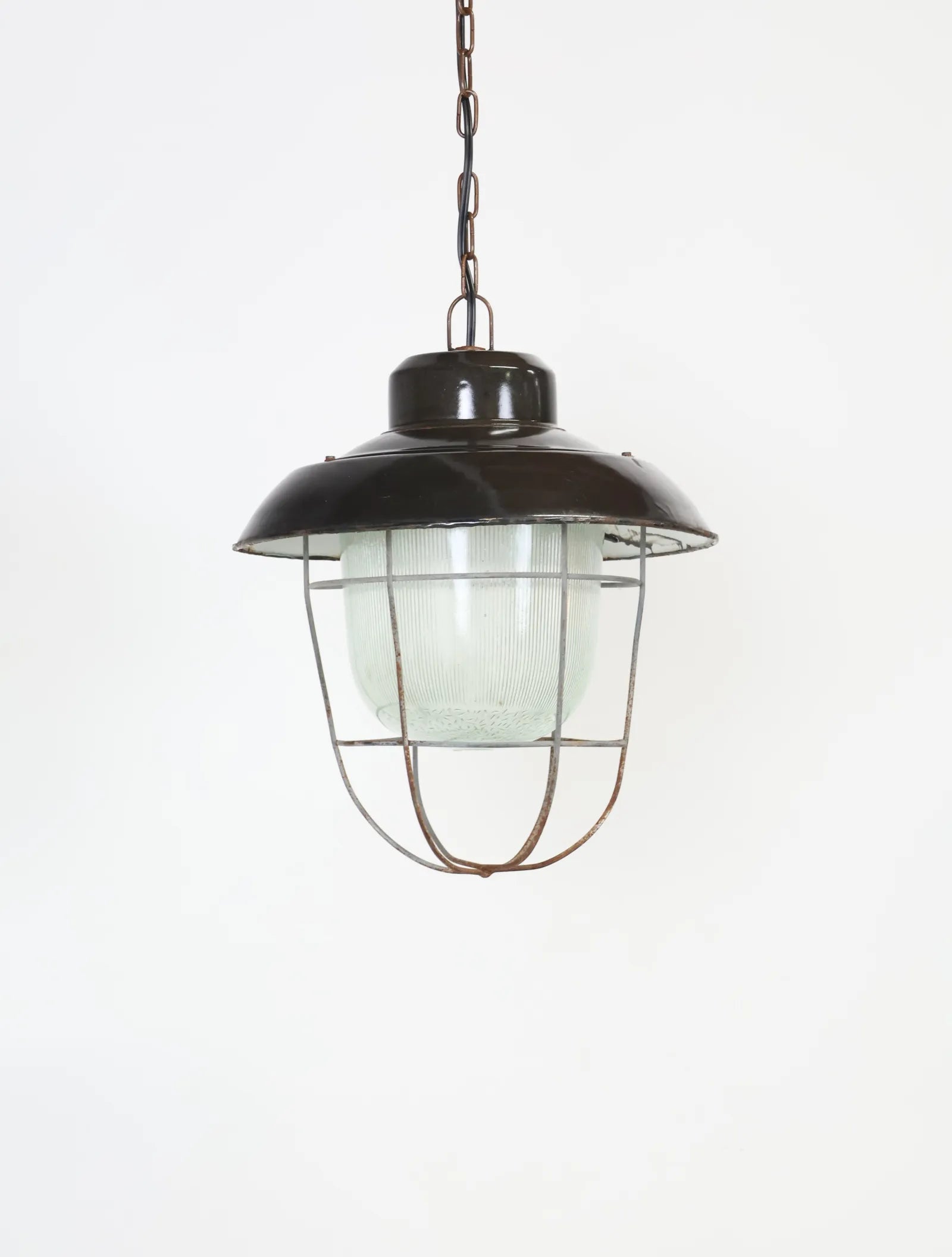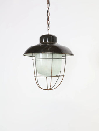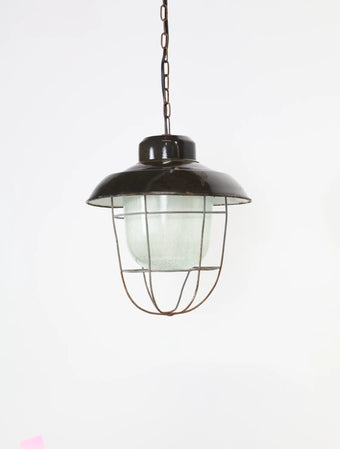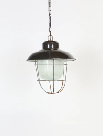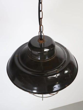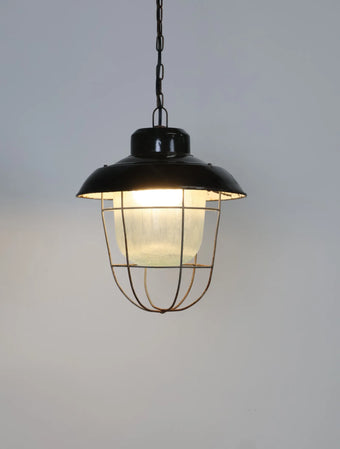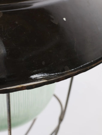 ヴィンテージ ブラック ポーセリン インダストリアル クリアガラス ペンダントランプ