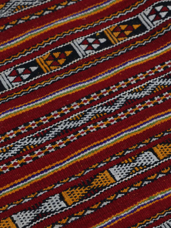 バーガンディーを基調にモロッコならではの細やかなストライプ柄が織り込まれたデザイン。