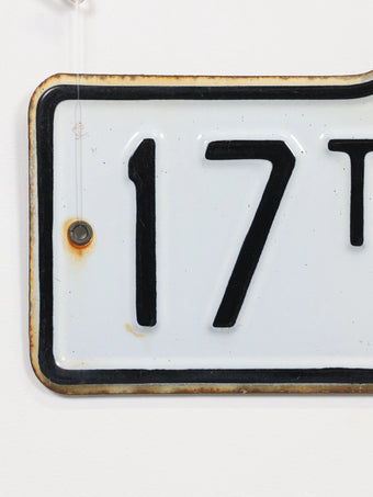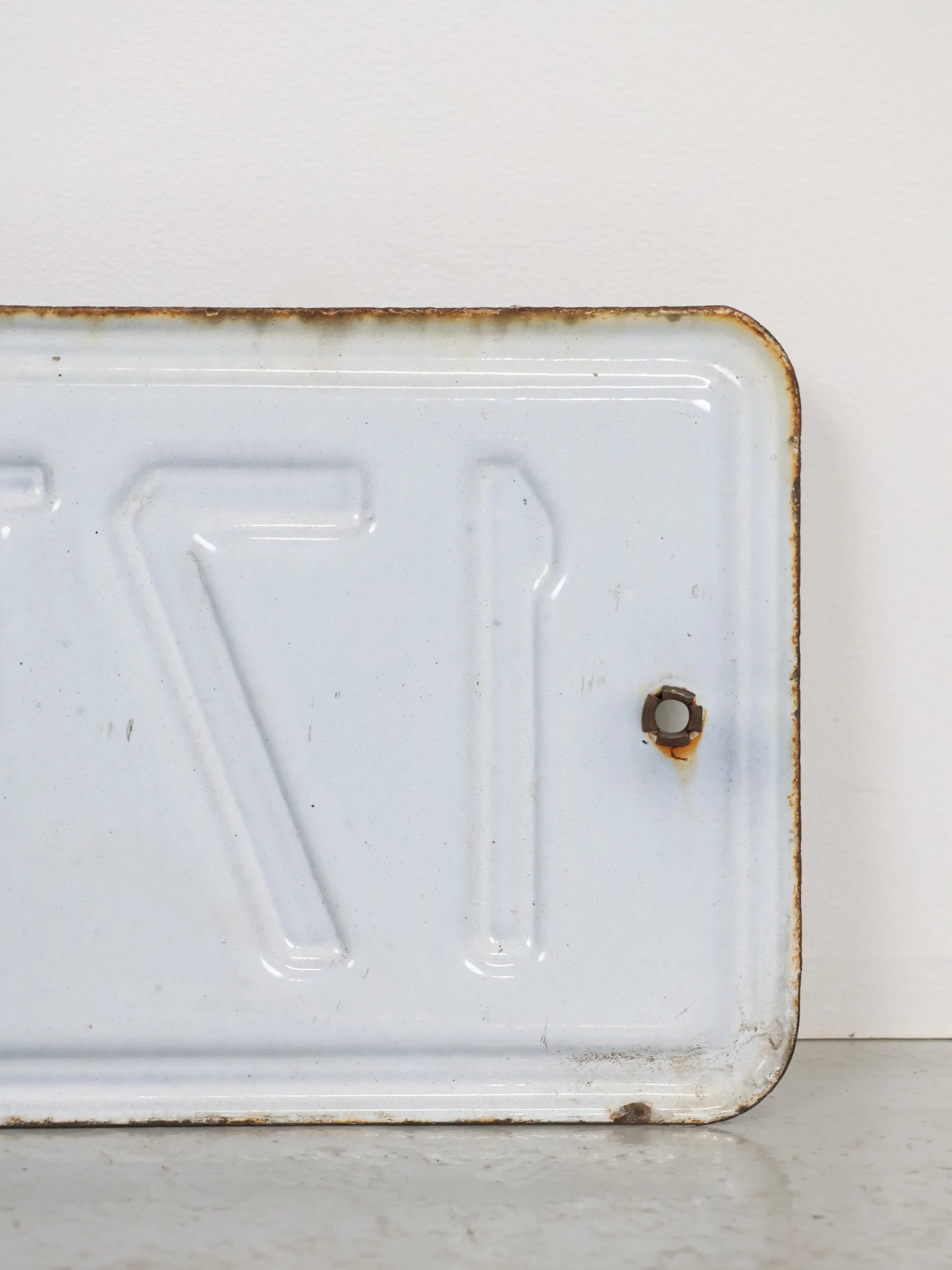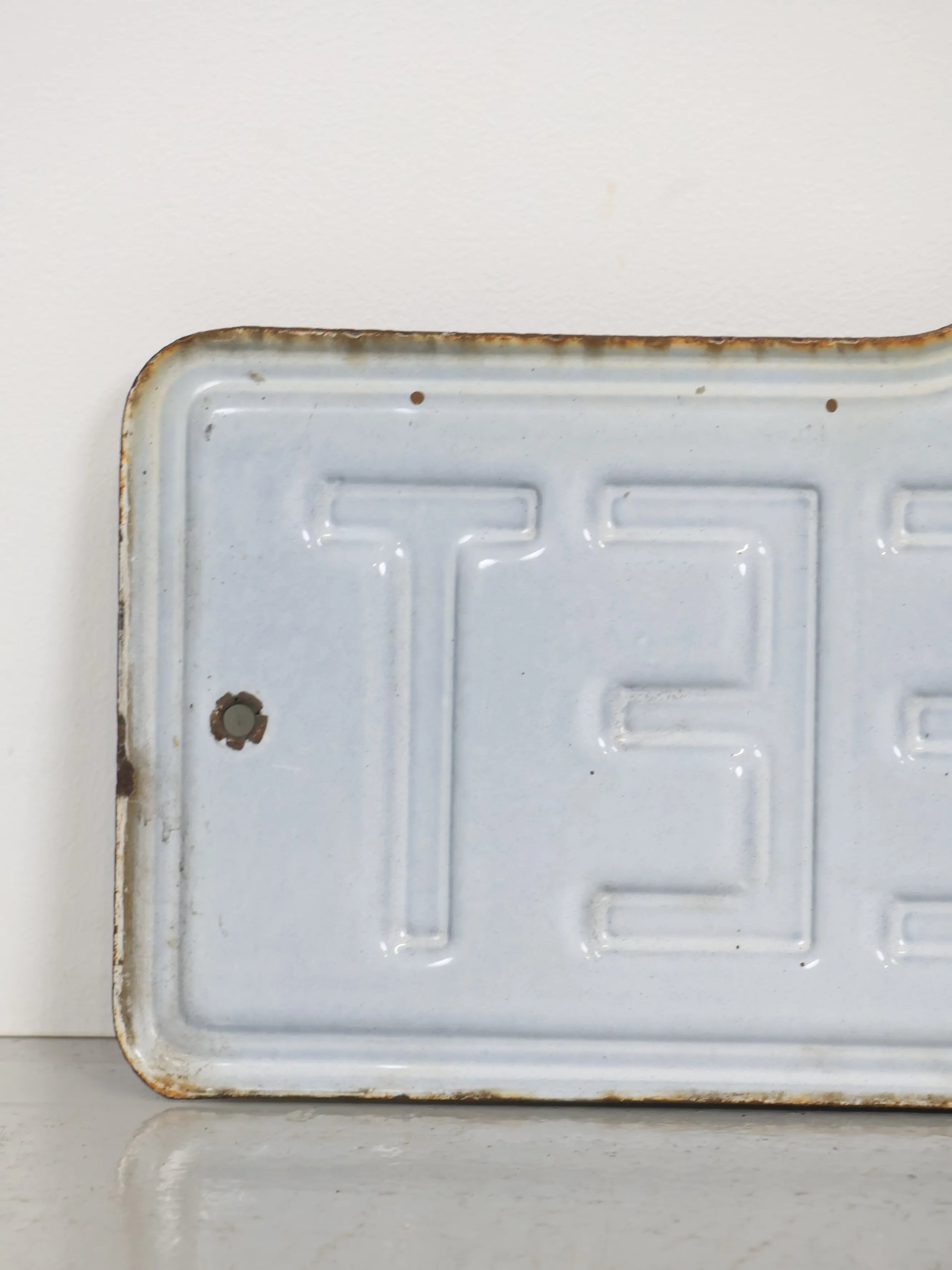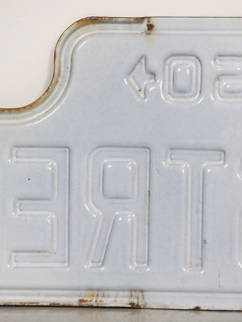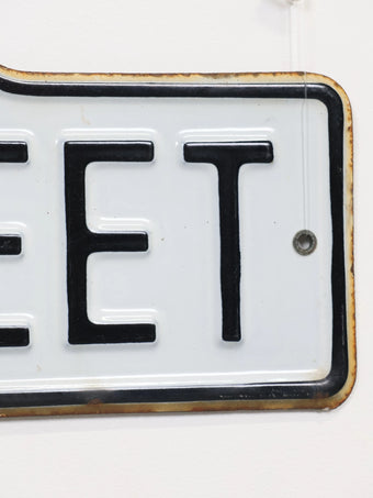 実際に道路標識として使用されていたストリートサインで、シンプルかつ機能美を感じさせるデザインが魅力の一枚。