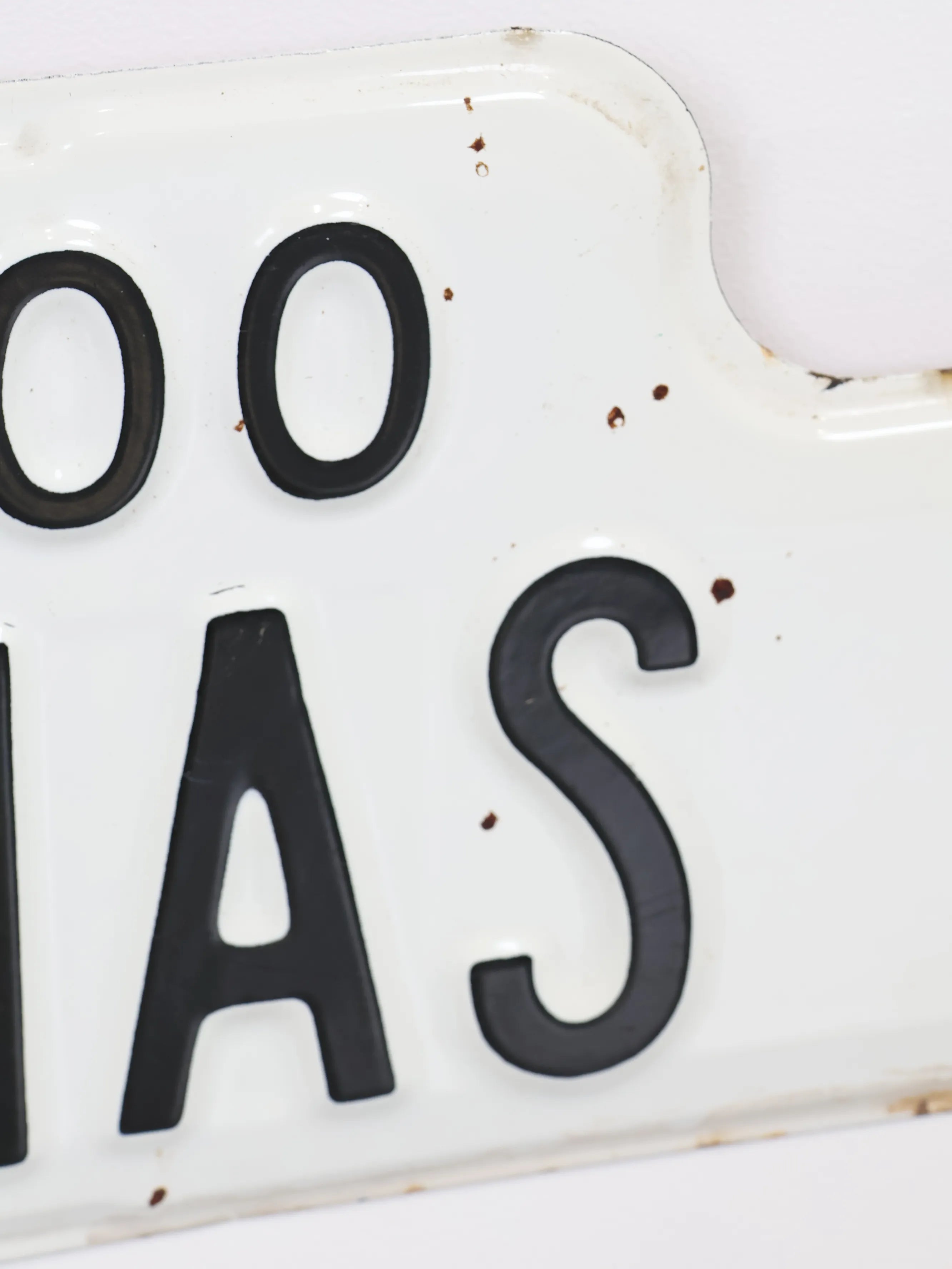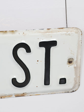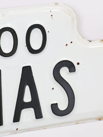 実際に使用されていた道路用のストリートサインで、シンプルながらも存在感のあるレタリングが印象的な一枚。