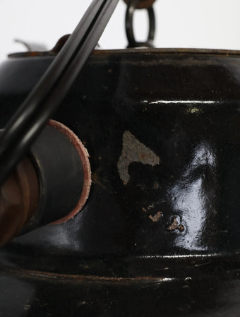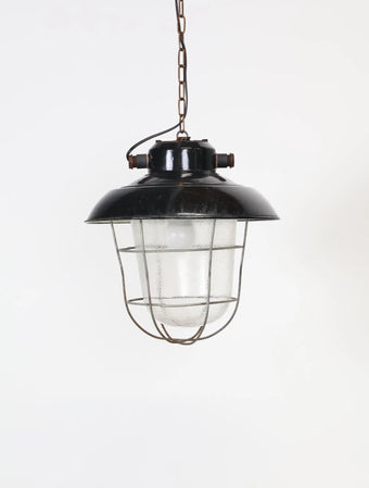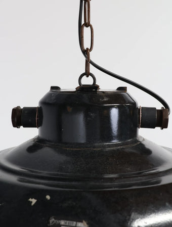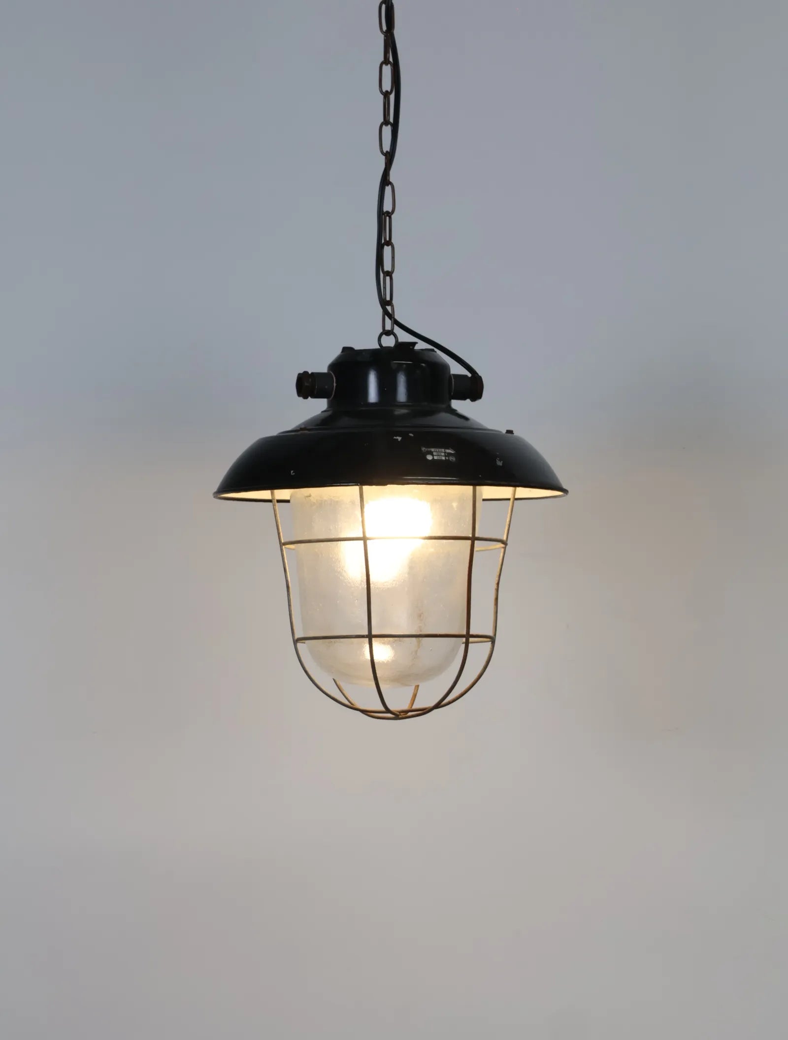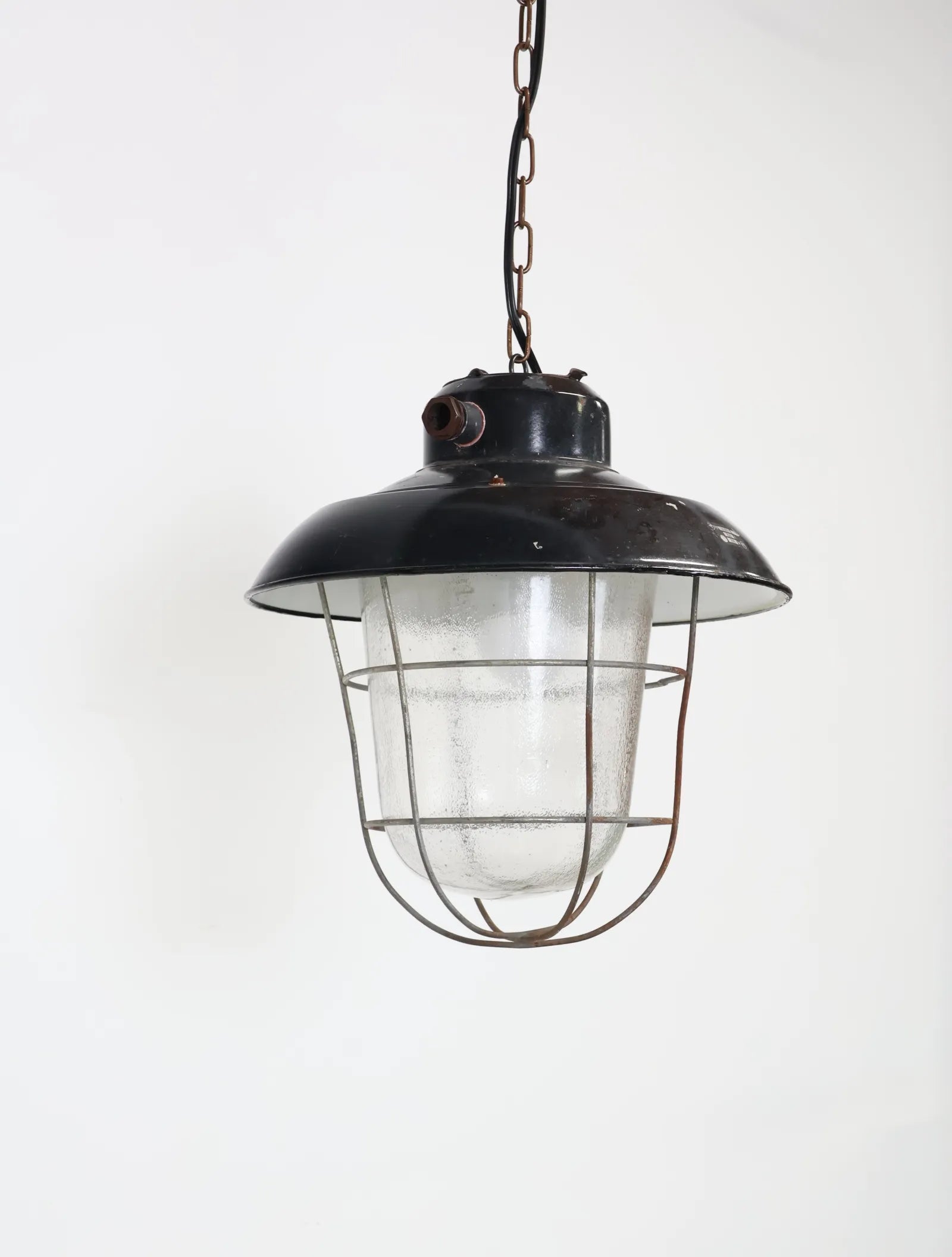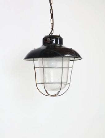 ヴィンテージ ブラック ポーセリン インダストリアル クリアガラス ペンダントランプ