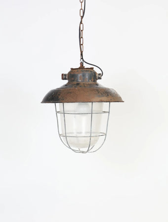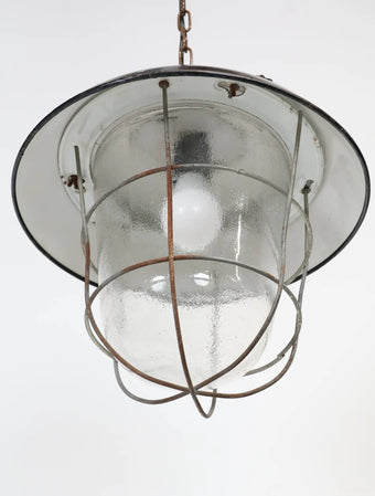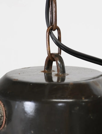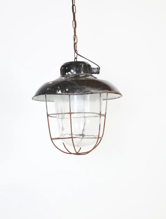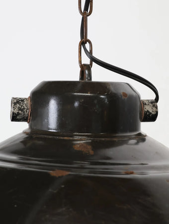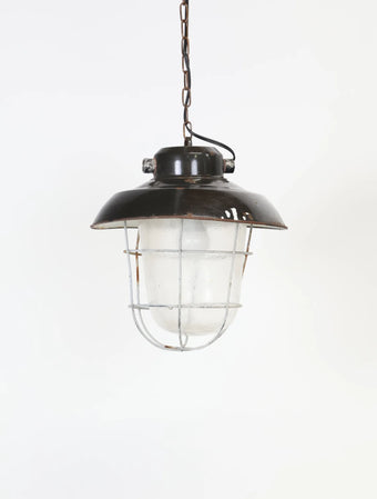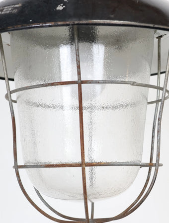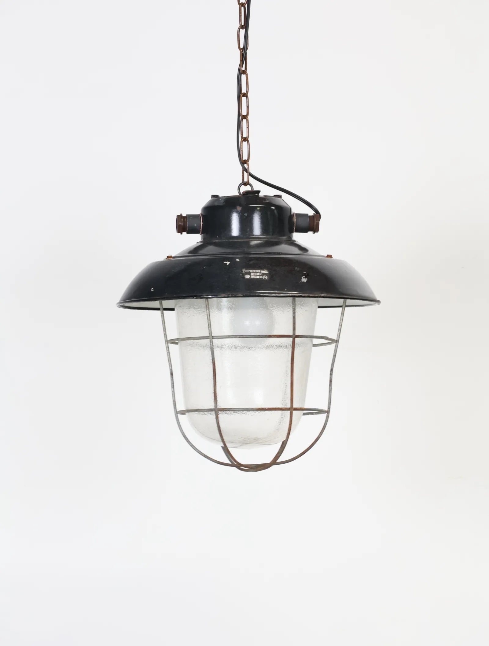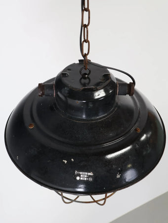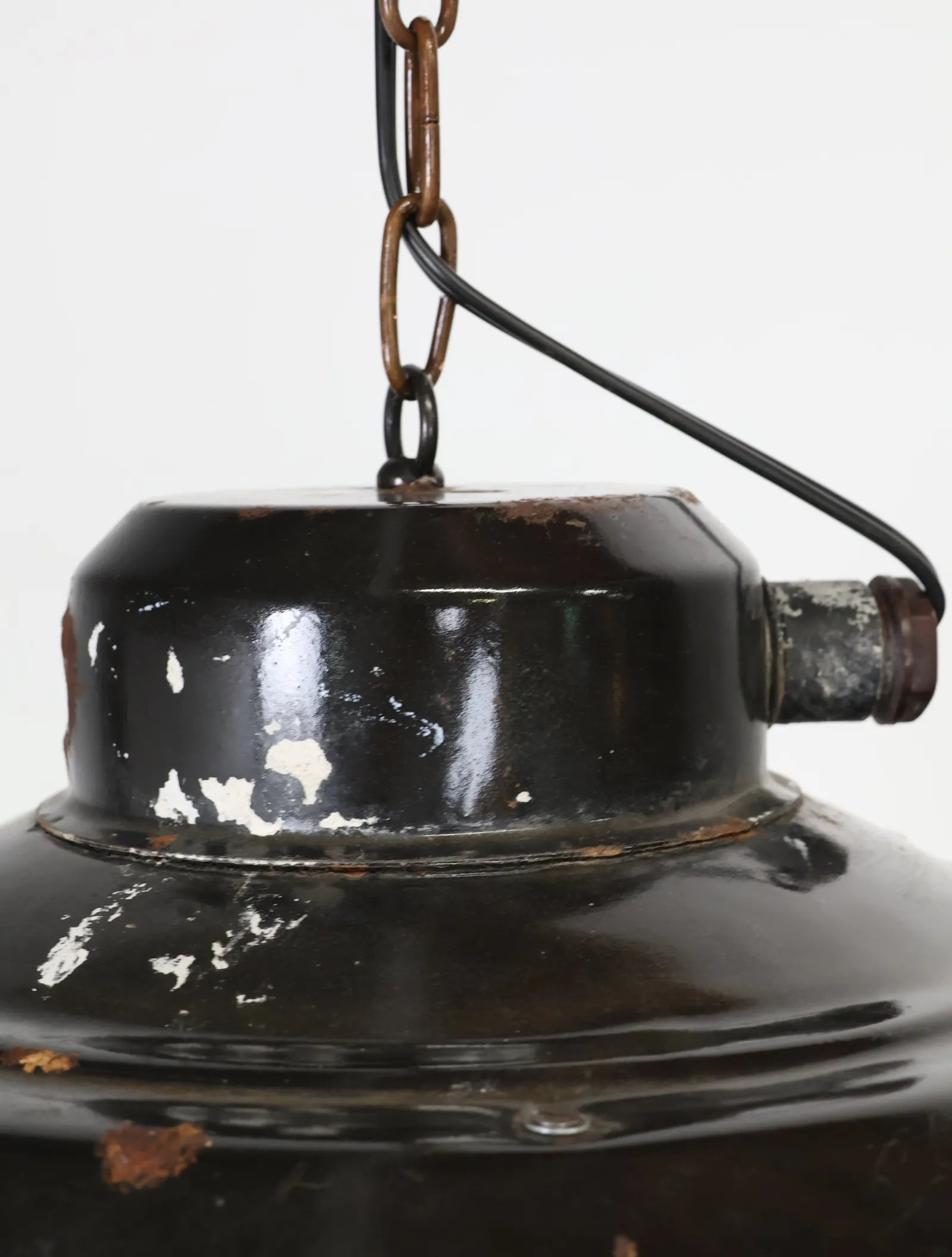 ヴィンテージ ブラック ポーセリン インダストリアル クリアガラス ペンダントランプ