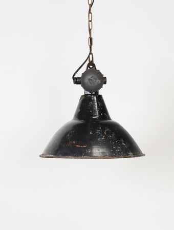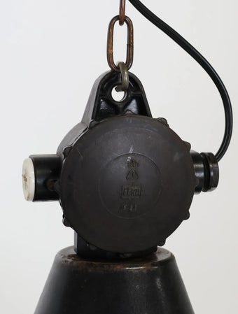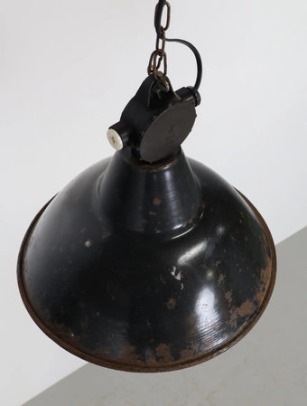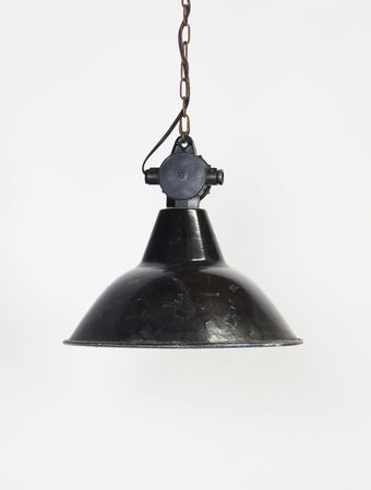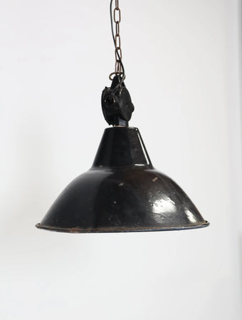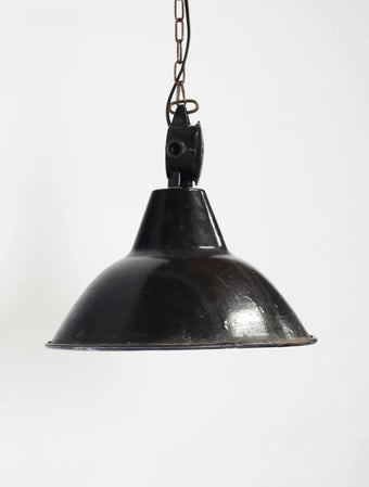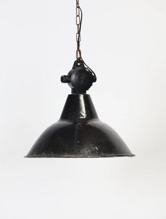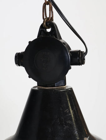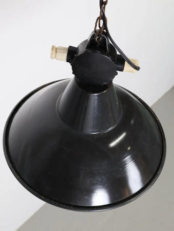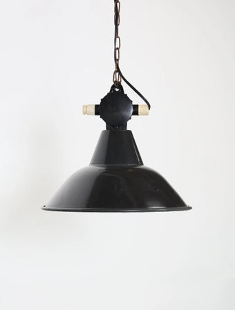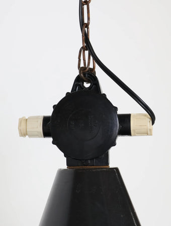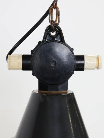 1950 - 60年代 ヴィンテージ インダストリアル ブラック ポーセリング ペンダントランプ