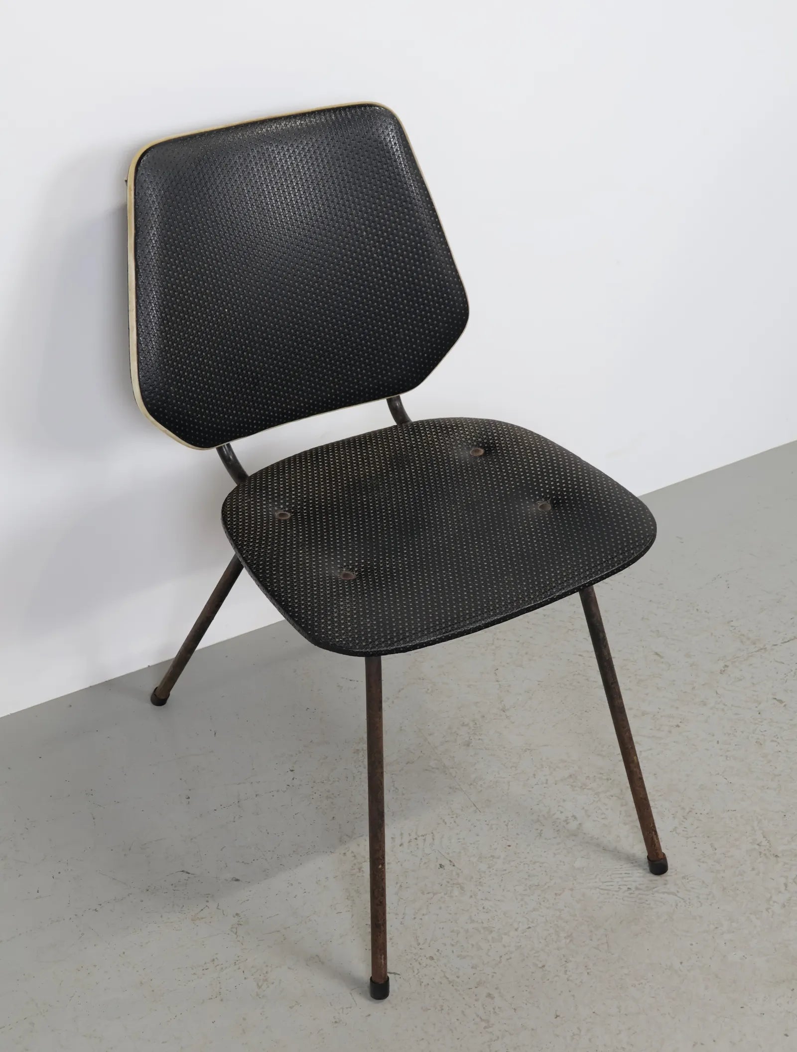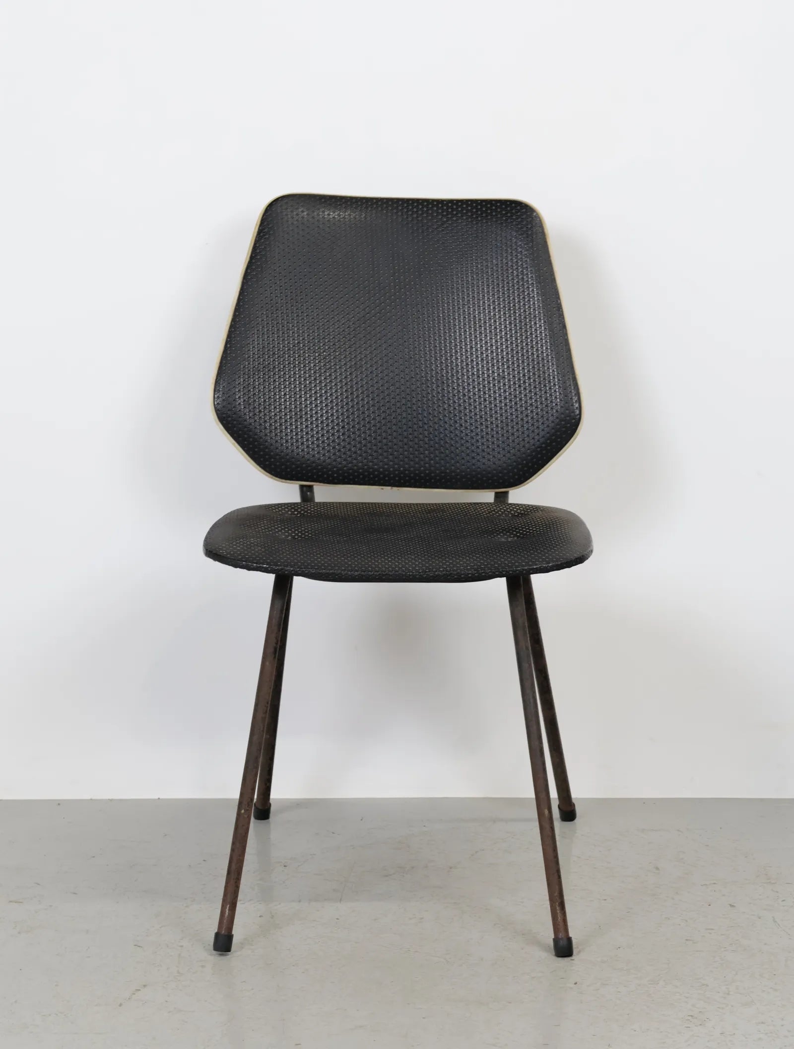 1960年代 ヴィンテージ アイアンベース ブラックビニール チェア イス