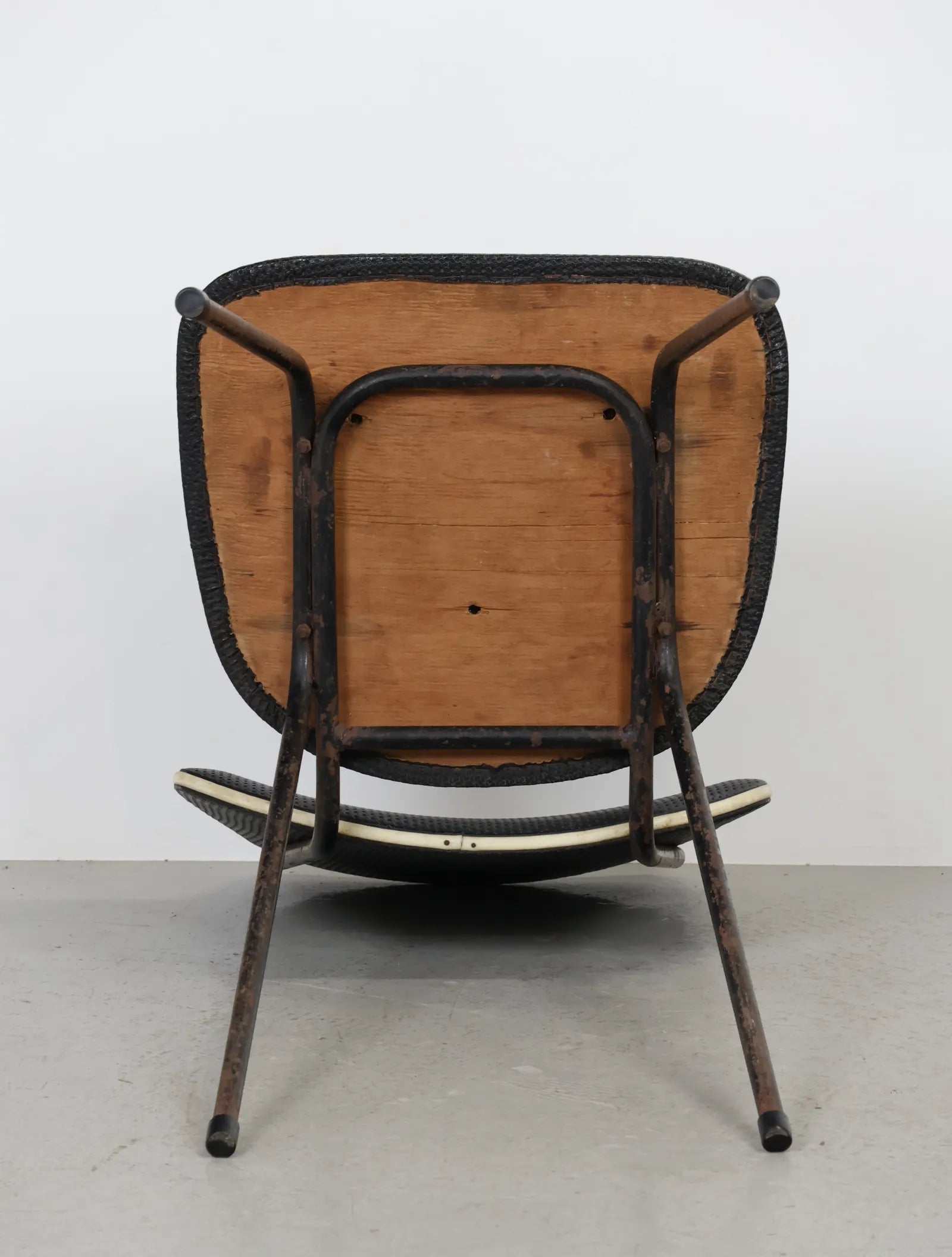 ヨーロッパより買い付けました1960年代のアイアンベースブラックビニールチェアです。