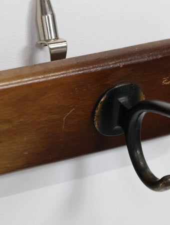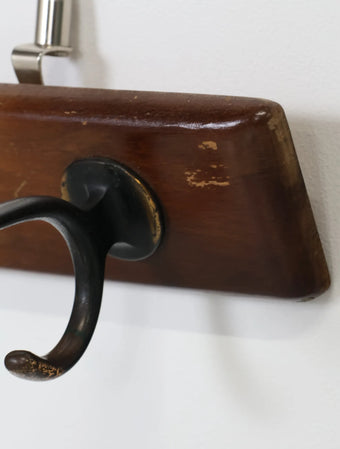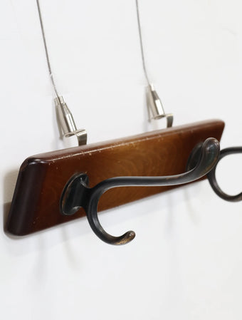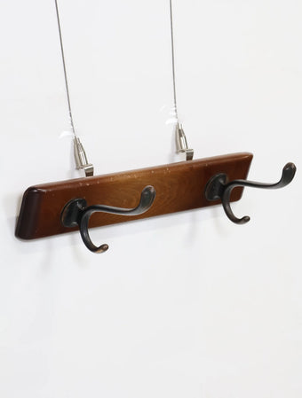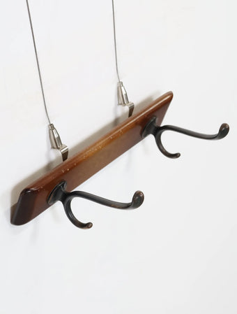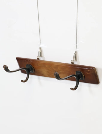 ヨーロッパより買い付けました1960年代のウッドベースブラスウォールラックです。