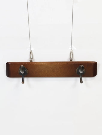グラデーションがかった風合い豊かなウッドに2つのブラスフックが付いたシンプルなデザイン。