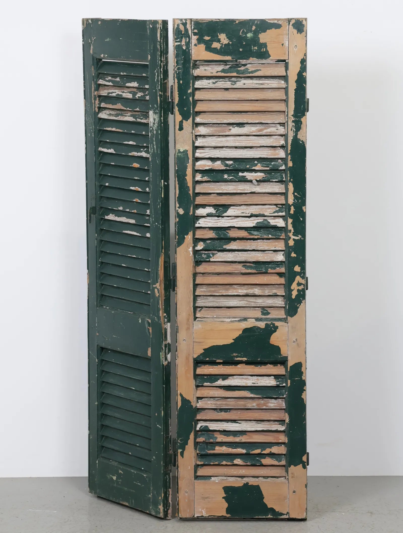 ヨーロッパより買い付けました1960年代-70年代のグリーンペイントシャッタードアパーテーションです。